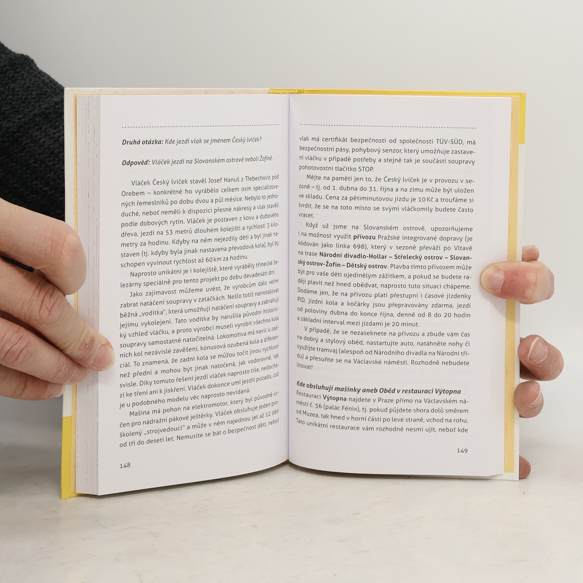 Neobvyklý turistický průvodce orientovaný na návštěvníky Prahy s malými dětmi. Je zaměřen velmi prakticky: řeší např. kde můžete děti bez problémů přebalit a nakojit, kde pro ně dostanete zdravé jídlo, kde najdete dětské koutky a hřiště apod. Zároveň se dívá na tradiční objekty turistického zájmu z dětské perspektivy. Rodičům nabízí poutavé příběhy, s jejichž pomocí mohou zvýšit zvědavost dítěte a jeho zájem o dané turisticky atraktivní místo. Návrhy jednotlivých tras jsou rozděleny podle stupňů obtížnosti pro různě velké děti (0–8 let) a nabízejí také různé alternativy podle zájmu dětí, počasí apod.
