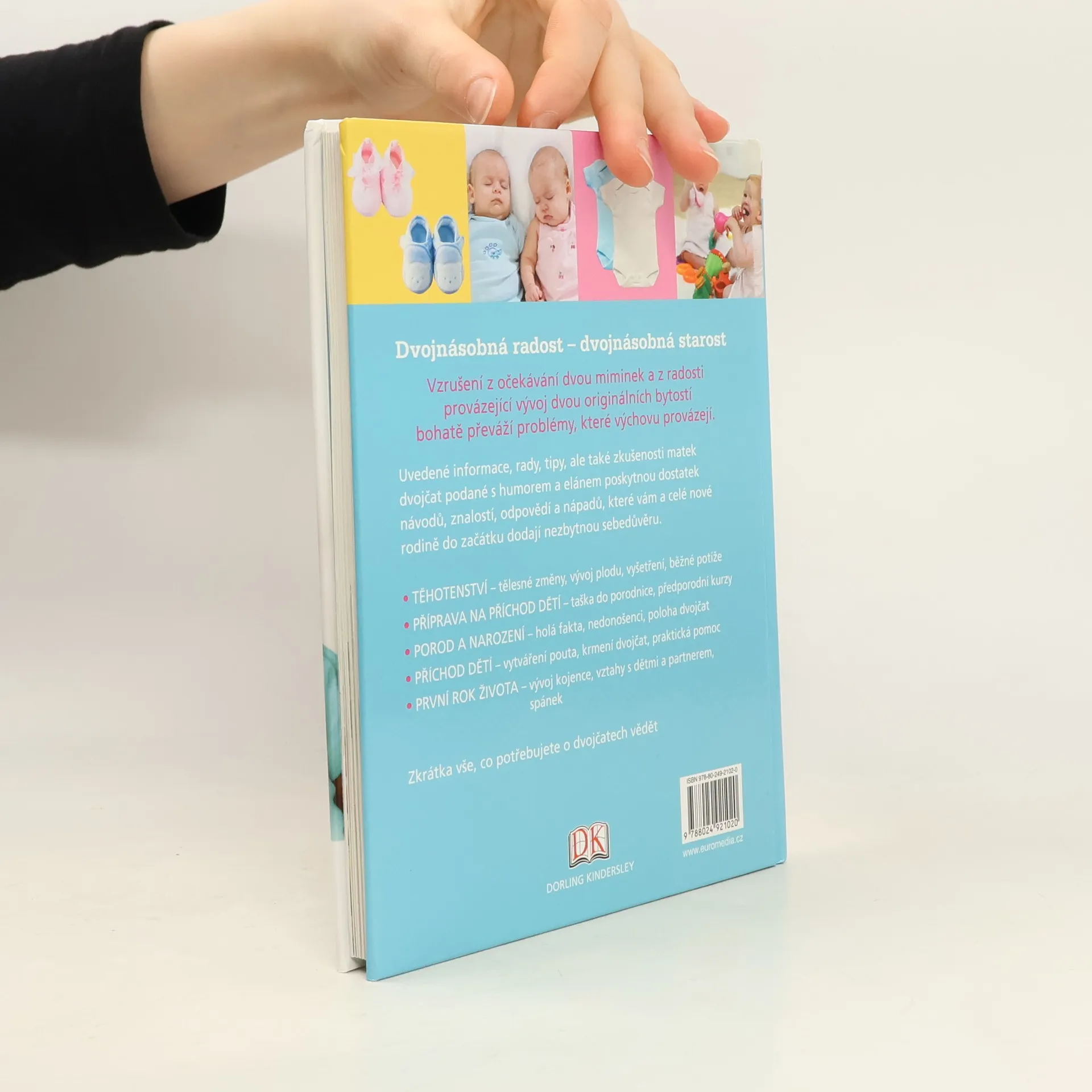 Praktický a povzbudivý průvodce těhotenstvím, porodem dvojčat a jejich prvním rokem života. Maminko, čekáte dvojčátka! Možná že po této větě zažijete šok, ale zároveň získáte vstupenku do nejlepšího klubu – do klubu maminek čekajících víc drobečků najednou. Knížka se určitě stane v průběhu těhotenství a prvního roku života miminek konejšivým objetím, upřímným stisknutím ruky a spolehlivým rádcem. Informace, rady a tipy vám poskytnou znalosti, odpovědi, vodítka a nápady, které vám a celé nové rodině do začátku dodají nezbytnou sebedůvěru.