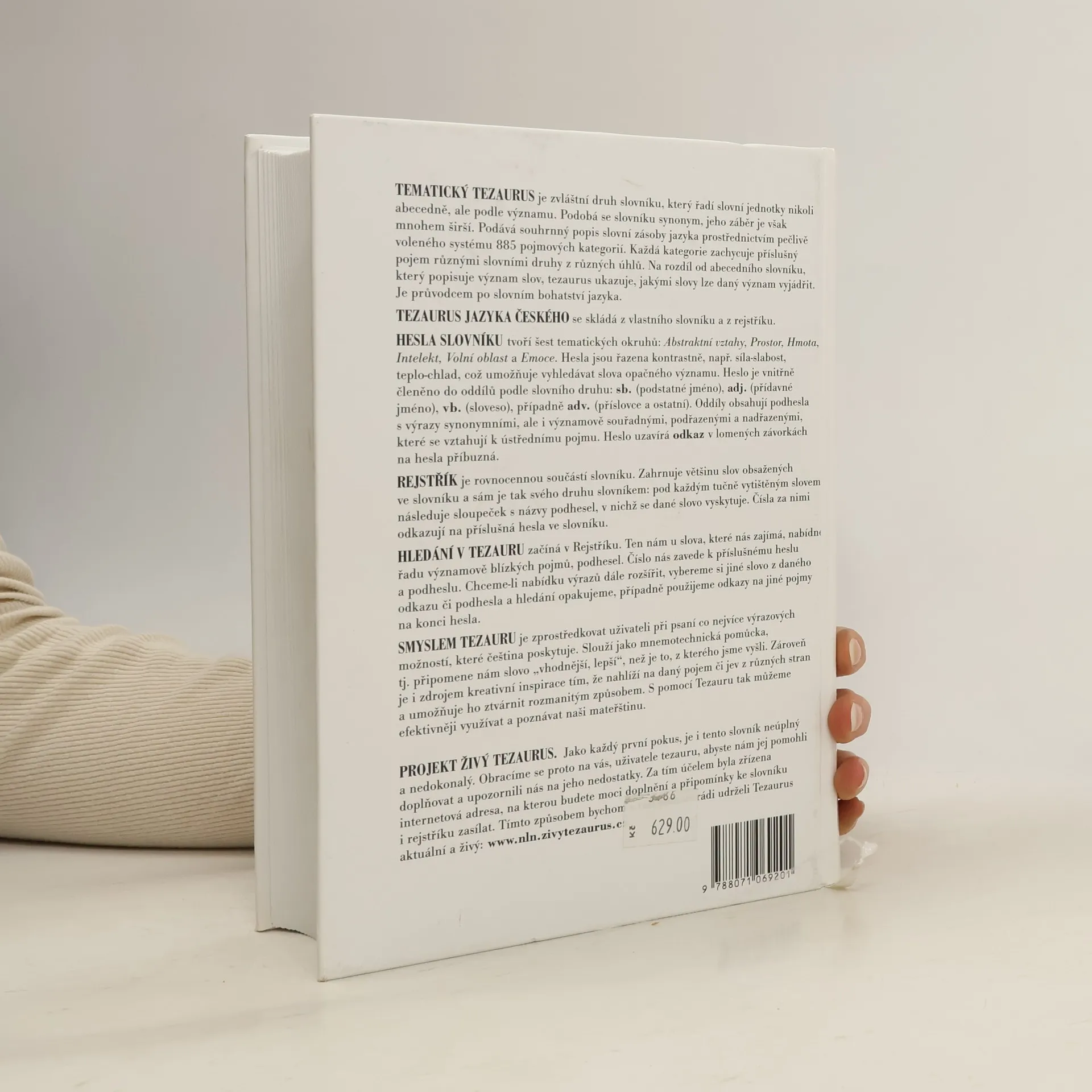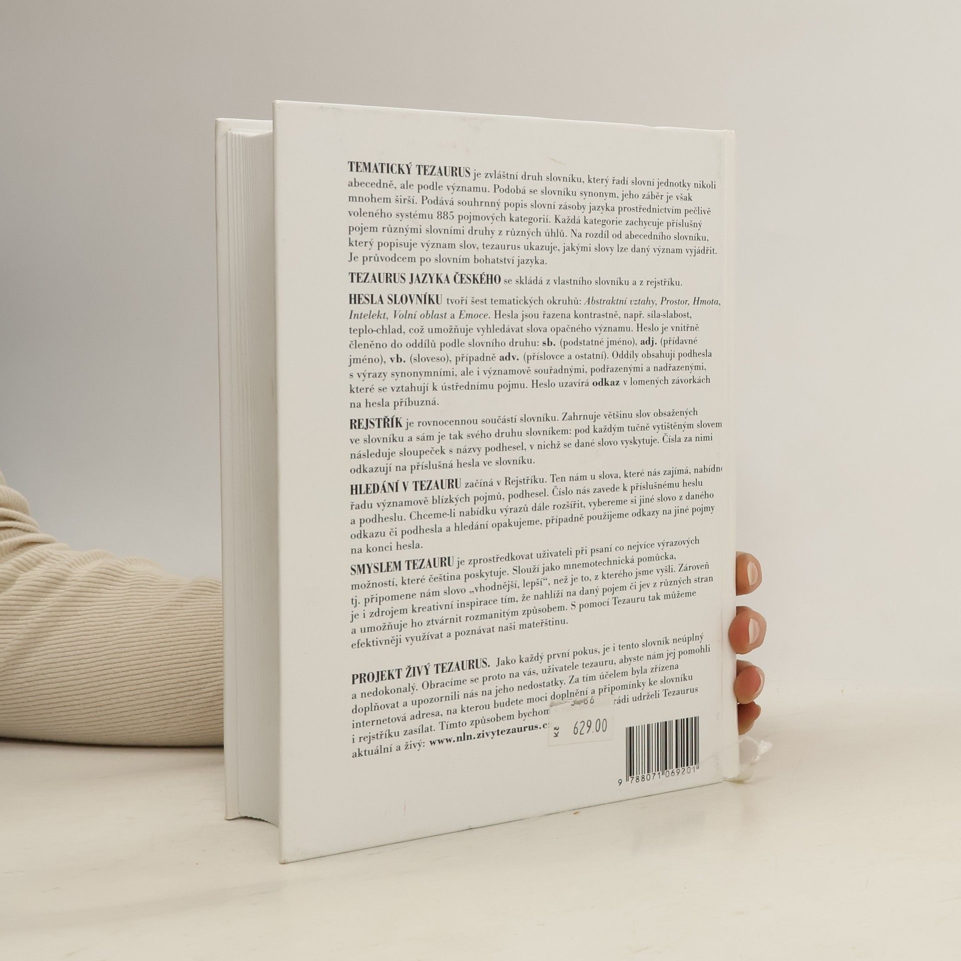 Tematický tezaurus je zvláštní druh slovníku, který řadí slovní jednotky nikoli abecedně, ale podle významu. Podobá se slovníku synonym, jeho záběr je však mnohem širší. Podává souhrnný popis slovní zásoby jazyka prostřednictvím pečlivě voleného systému 885 pojmových kategorií. Každá kategorie zachycuje příslušný pojem různými slovními druhy z různých úhlů. Na rozdíl od abecedního slovníku, který popisuje význam slov, tezaurus ukazuje, jakými slovy lze daný význam vyjádřit. Je průvodcem po slovním bohatství jazyka. Tezaurus jazyka českého se skládá z vlastního slovníku a z rejstříku.