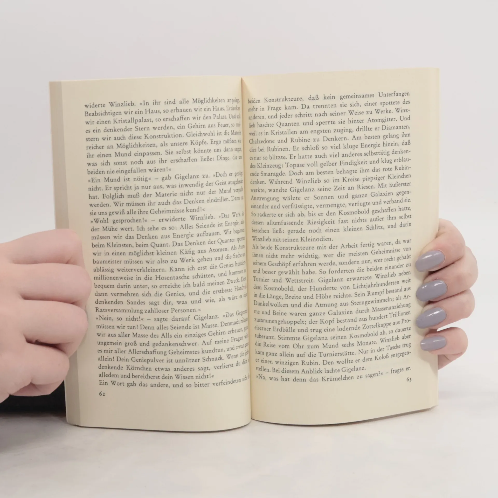 Als Klebäugler, Teignasen und Bleichlinge treten die Menschen in diesen futuristischen Märchen, die vorgeblich Roboter für Roboter geschrieben haben, in Erscheinung. Unsere metallenen und kristallischen Brüder haben das Joch des Menschen abgeschüttelt und sind in den Kosmos entfleucht. Die schrecklichsten unter ihren ergötzlichen und feinsinnigen Märchen und Mythen handeln von Kämpfen mit dem entsetzlichen Bleichling, einem Ungeheuer, das durch seinen bloßen Anblick jeden anständigen Roboter zum Rosten bringen kann.