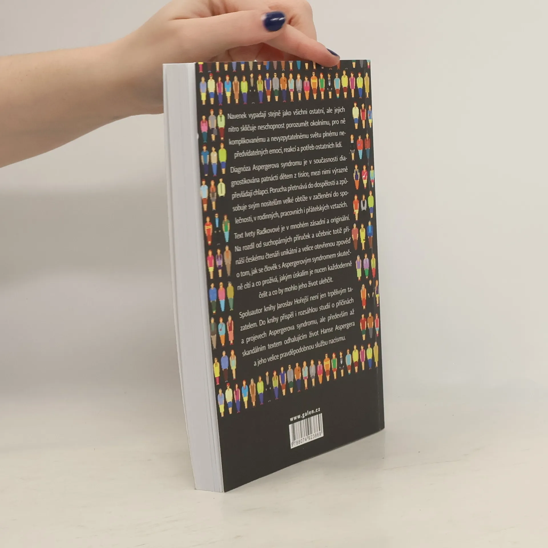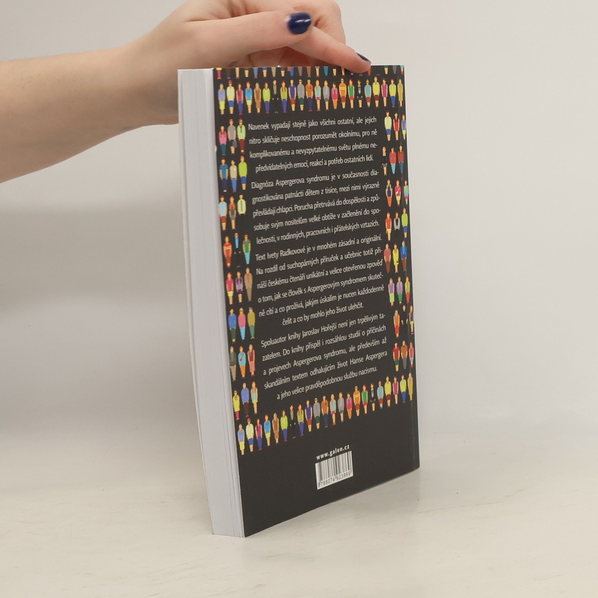 Navenek vypadají stejně jako všichni ostatní, ale jejich nitro skličuje neschopnost porozumět okolnímu, pro ně komplikovanému a nevyzpytatelnému světu plnému nepředvídatelných emocí, reakcí a potřeb ostatních lidí. Diagnóza Aspergerova syndromu je v současnosti diagnostikována patnácti dětem z tisíce, mezi nimi výrazně převládají chlapci. Porucha přetrvává do dospělosti a způsobuje svým nositelům velké obtíže v začlenění do společnosti, v rodinných, pracovních i přátelských vztazích. Text Ivety Radkovové je v mnohém zásadní a originální. Na rozdíl od suchopárných příruček a učebnic totiž přináší českému čtenáři unikátní a velice otevřenou zpověď o tom, jak se člověk s Aspergerovým syndromem skutečně cítí a co prožívá, jakým úskalím je nucen každodenně čelit a co by mohlo jeho život ulehčit. Spoluautor knihy Jaroslav Hořejší není jen trpělivým tazatelem. Do knihy přispěl i rozsáhlou studií o příčinách a projevech Aspergerova syndromu, ale především až skandálním textem odhalujícím život Hanse Aspergera a jeho velice pravděpodobnou službu nacismu.