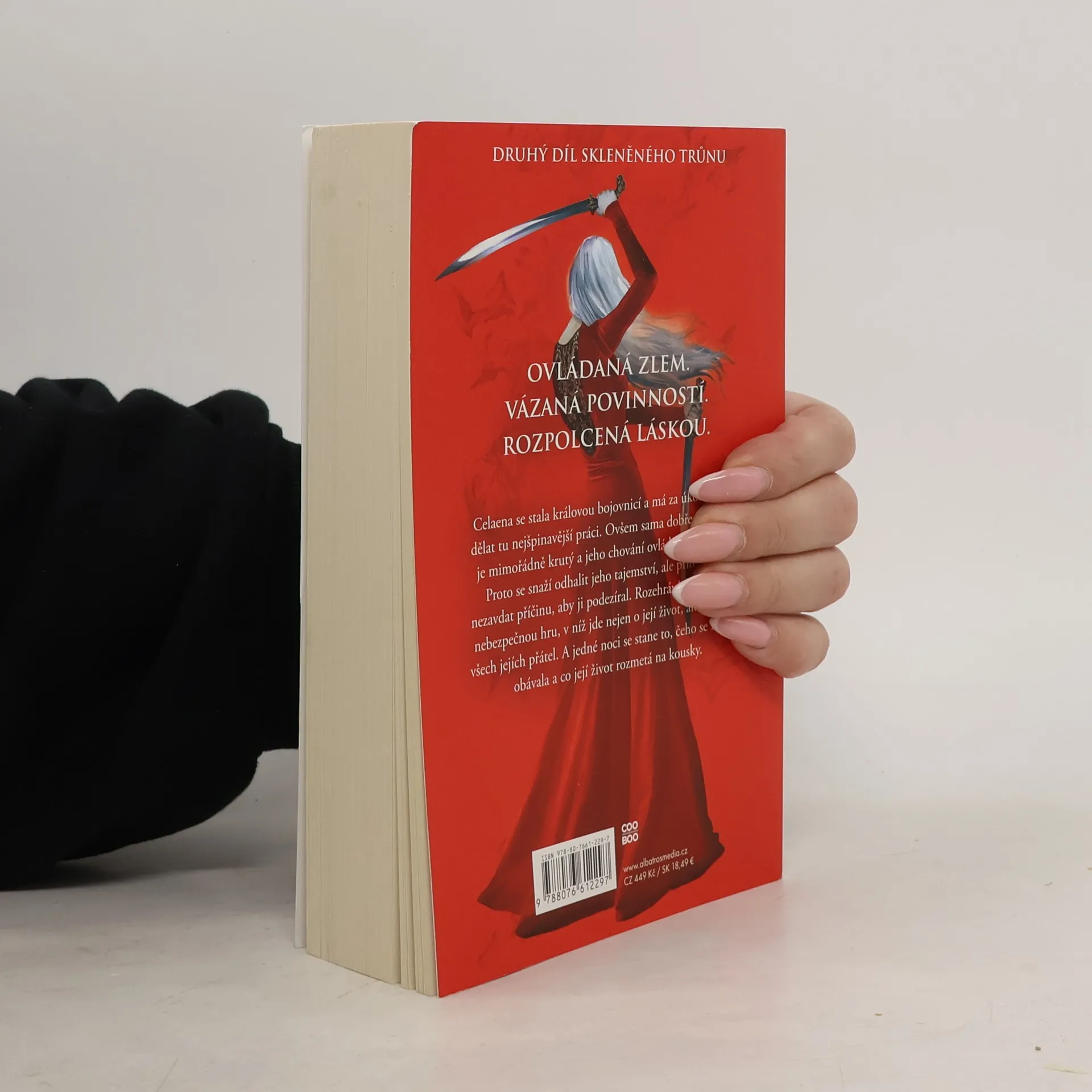 Nelítostný boj pokračuje … Druhý díl bestsellerové série Skleněný trůn. Celaena se stala bojovnicí mimořádně krutého a tajemným zlem ovládaného krále. Rozehrává smrtelně nebezpečnou hru, ve snaze odhalit královo tajemství. O život však jde nejen jí, ale i všem jejím přátelům! Jedné noci se stane to, čeho se nejvíce obávala a co její život rozmetá na kousky… 2. díl bestsellerové série Skleněný trůn.
