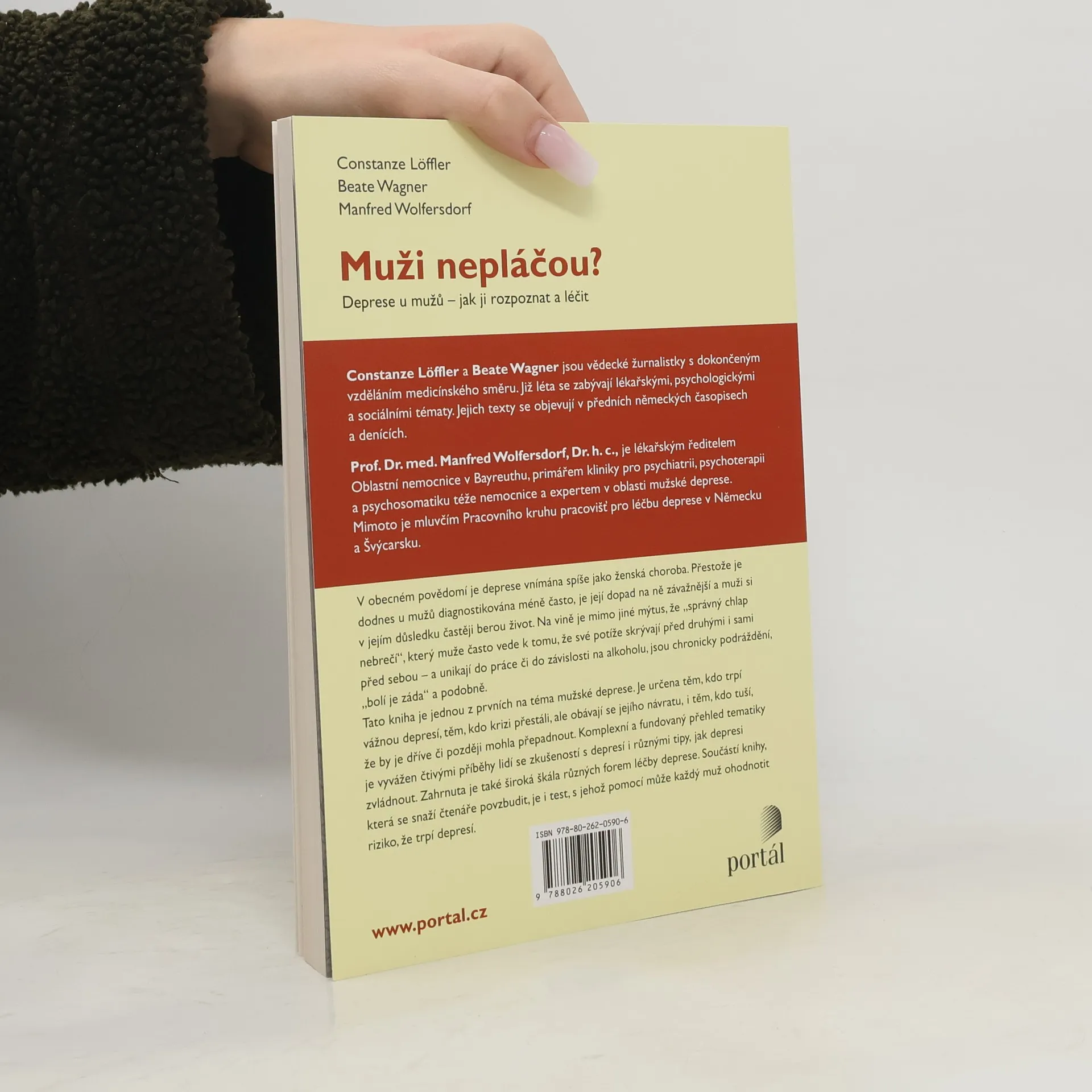Deprese u mužů - Jak ji rozpoznat a léčit. V obecném povědomí je deprese vnímána spíše jako ženská choroba. Přestože je dodnes u mužů diagnostikována méně často, její dopad na muže je závažnější a muži si v jejím důsledku častěji berou život. Na vině je mimo jiné mýtus, že „správný chlap nebrečí“, který muže často vede k tomu, že své potíže skrývají před druhými i sami před sebou – a unikají do práce či do závislosti na alkoholu, jsou chronicky podráždění, „bolí je záda“ a podobně. Tato kniha je jednou z prvních na téma mužské deprese. Je určena pro ty, kdo trpí vážnou depresí, pro ty, kdo krizi přestáli, ale obávají se jejího návratu, i pro ty, kdo tuší, že by je dříve či později mohla přepadnout. Komplexní a fundovaný přehled tematiky je vyvážen čtivými příběhy lidí se zkušeností deprese i různými tipy, jak depresi zvládnout. Zahrnuta je široká škála různých forem léčby deprese. Součástí knihy, která se snaží čtenáře povzbudit, je i test, s jehož pomocí může každý muž ohodnotit riziko, že trpí depresí.