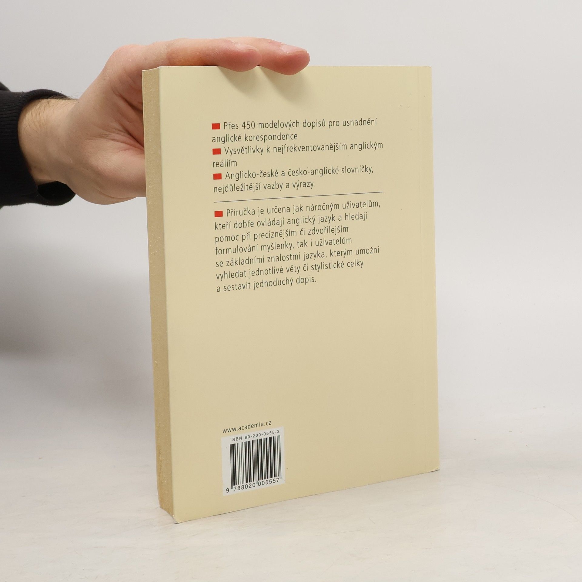 Přes 450 modelových dopisů pro usnadnění anglické korespondence. Vysvětlivky k nejfrekventovanějším anglickým reáliím. Anglicko-české a česko-anglické slovníčky, nejdůležitější vazby a výrazy.
