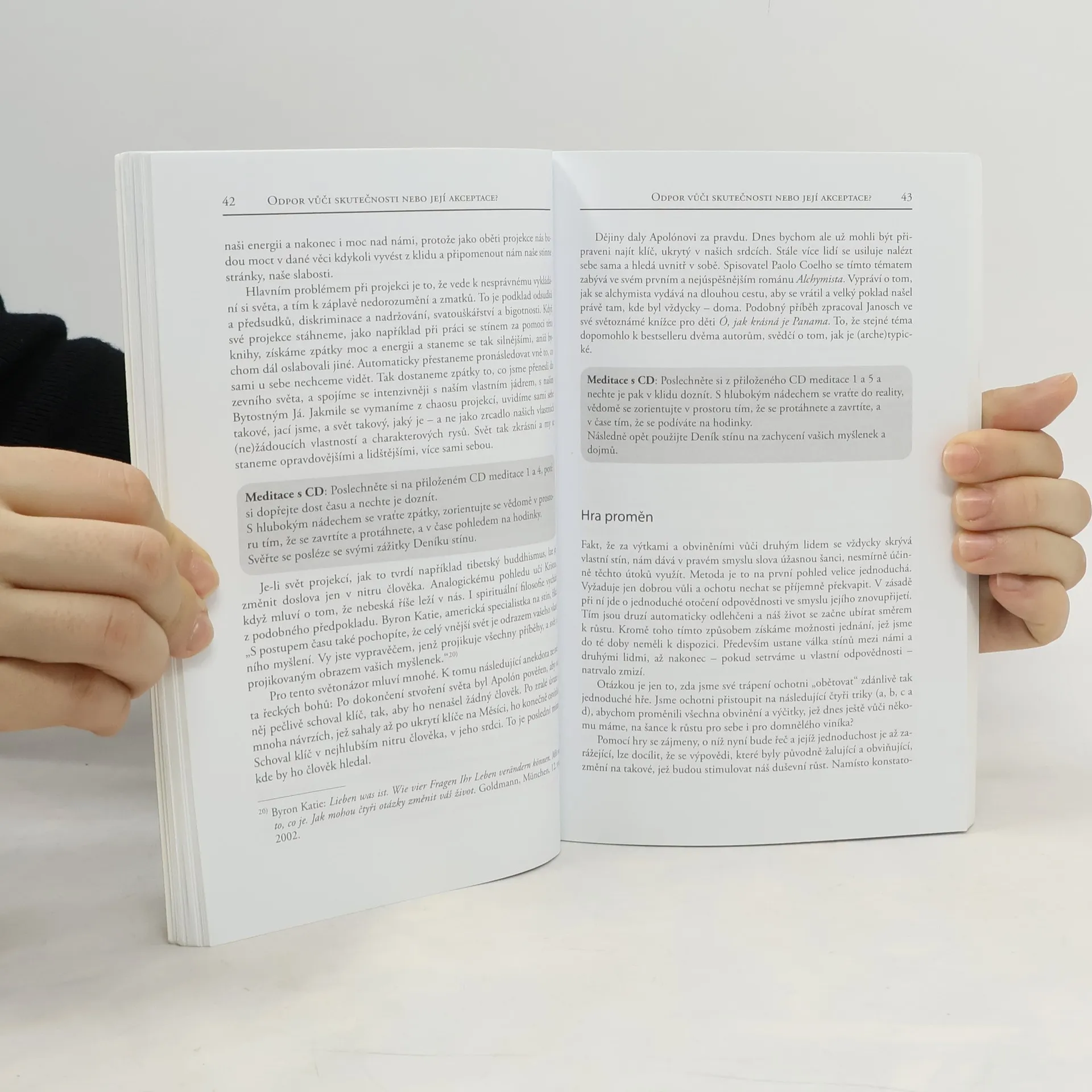 Podle učení C. G. Junga je stínem naše podvědomí. Je to ta osobnost, kterou bychom nejraději nebyli, ale kterou se nakonec stát musíme, když chceme být celiství. Náš stín, tedy naší „temnou stránku“, prociťujeme velmi ambivalentně: je nám odporná, ale zároveň nás fascinuje. Práce se stínem slouží tomu, abychom se stali vědomými a je tedy v pravém slova smyslu prací se světlem. Stín je vlastně naším pokladem, obohacuje nás tak, jako málo co jiného. Dahlke nám ukazuje, jak náš stín vypátrat a jak se s ním konfrontovat, abychom ho nakonec mohli přijmout, integrovat do své osobnosti a možná dokonce i začít milovat.