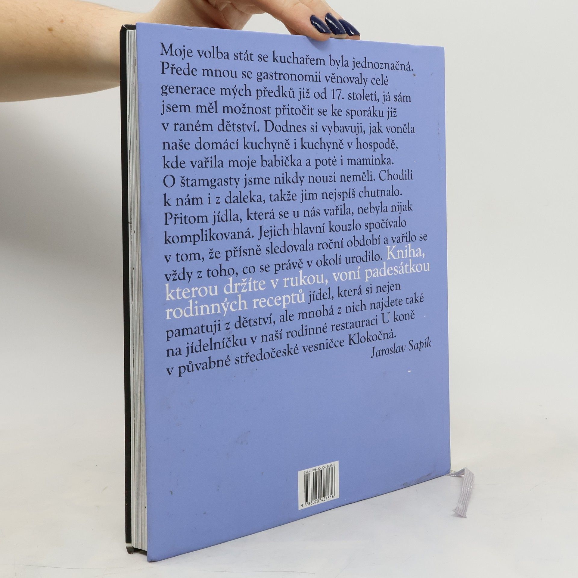 Jaroslav Sapík zcela záměrně již desetiletí navazuje na tradice měšťanské kuchyně, která ve své nejlepší podobě patřila ke špičce evropské gastronomie. Jeho nová česká kuchařka představí klasickou i moderní českou kuchyni založenou především na domácích produktech. Její členění zdůrazňuje chuťovou pestrost i moderní kuchařské trendy i hlediska racionální výživy. Jaroslav Sapík představí nejen přes 40 receptů, ale zároveň představí historii české kuchyně, upozorní na její přednosti, na něž je dobré navazovat, nevyhne se však ani současným negativním prvkům. Kapitoly o historii doprovázejí dobové fotografie a dokumenty, staré, často rodinné recepty a osobní vzpomínky autora této výjimečné kuchařky.