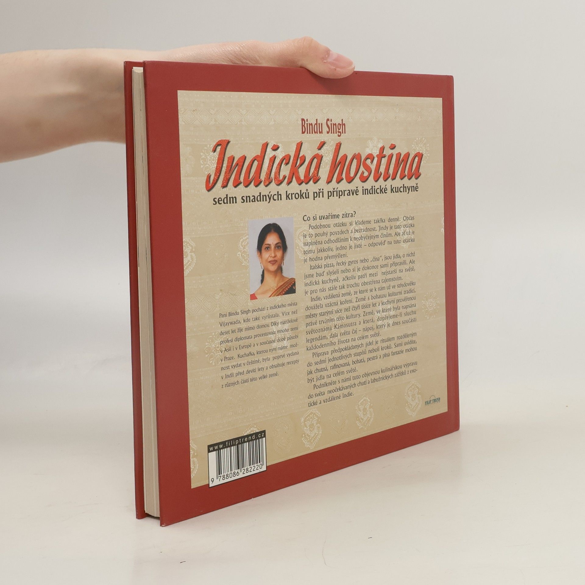 V úvodu nás kniha seznámí se surovinami a kořením používaným v indické kuchyni.Následuje 148 indických receptů na hlavní pokrmy,polévky,saláty,přílohy a moučníky.Každý recept je popsán v 7 jednoduchých krocích.
