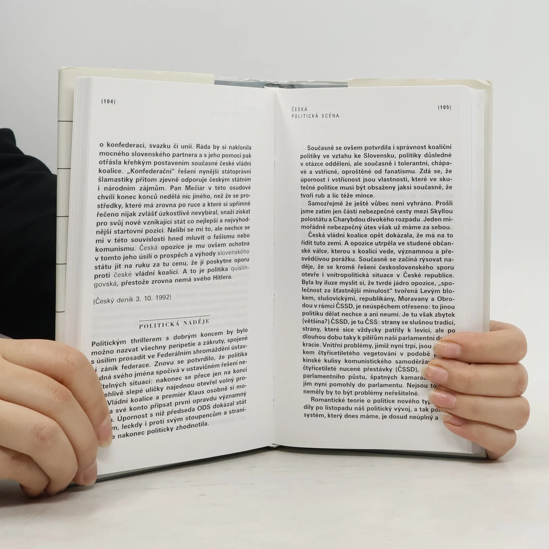 Výběr z publistických statí B. Doležala z let 1991-1996 členěných do kapitol: České tradice - České mýty - Bída české pravice - Disident a politika - Druhá vlna sametové revoluce - Česká politická scéna - Hospodářství a politika - Centralismus a samospráva - Politika a média - Češi a Evropa - Češi a Němci - Češi a Slováci.