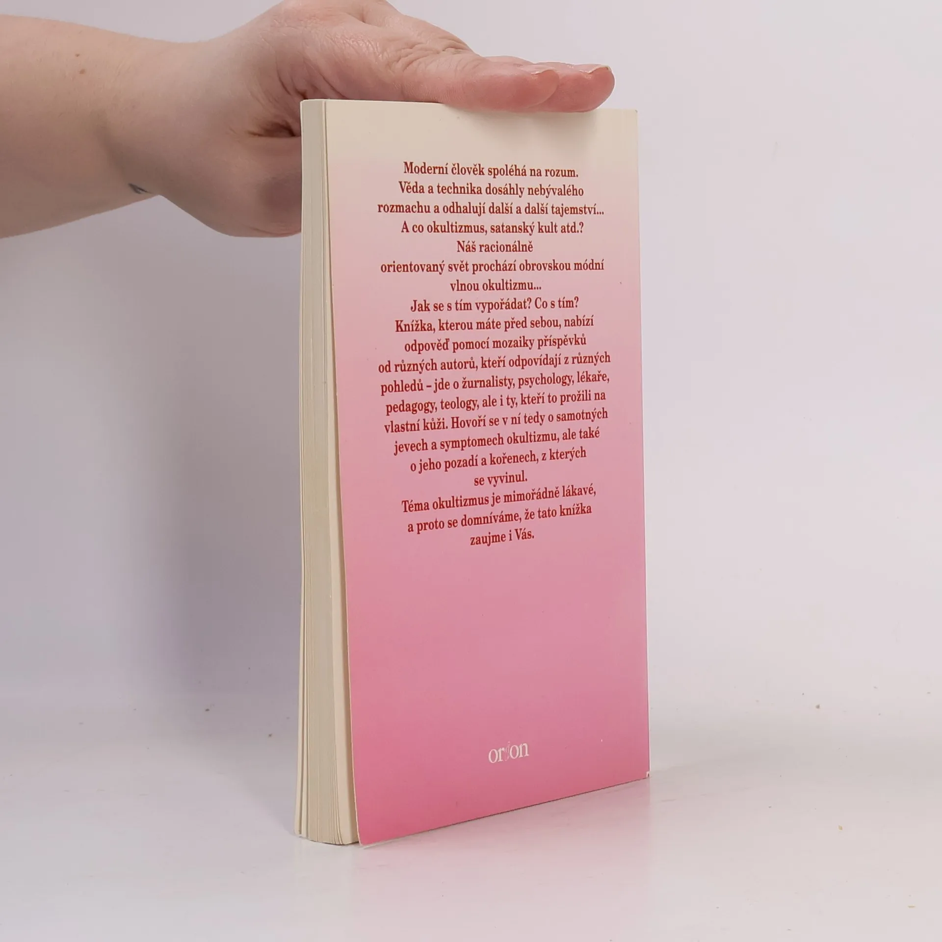Moderní člověk spoléhá na rozum. Věda a technika dosáhly nebývalého rozmachu a odhalují další a další tajemství...A co okultizmus, satanský kult atd.? Náš racionálně orientovaný svět prochází obrovskou módní vlnou okultizmu... Jak se s tím vypořádat? Co s tím? Knížka, kterou máte před sebou, nabídí odpověď pomocí mozaiky příspěvků od různých autorů, kteří odpovídají z různých pohledů - jde o žurnalisty, psychology, lékaře, pedagogy, teology, ale i ty, kteří to prožili na vlastí kůži. Hovoří se v ní tedy o samotných jevech a symptomech okultizmu, ale také o jeho pozadí a kořenech, z kterých se vyvinul. Téma okultizmus je mimořádně lákavé, a proto se domníváme, že tato knížka zaujme i Vás. - Oficiální anotace z knihy