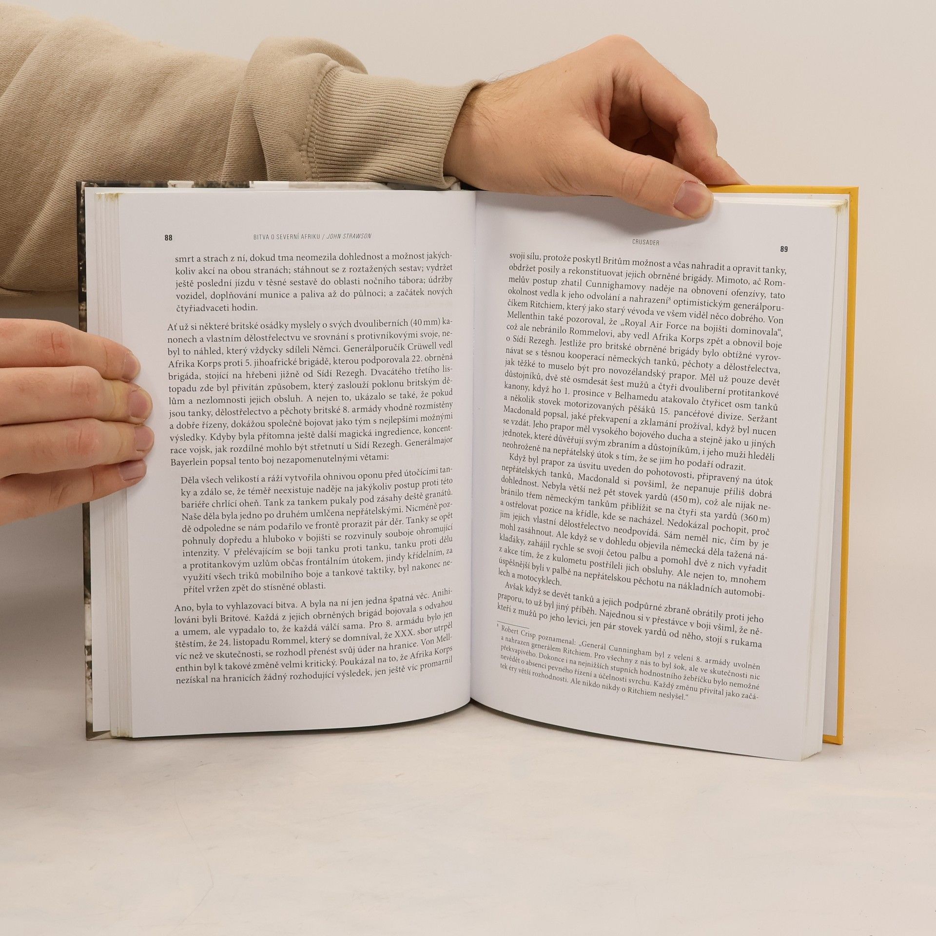 Autor ukazuje povahu bitev, ke kterým během kampaně v letech 1940-1943 docházelo, popisuje strategické úvahy i průběh jednotlivých bitev a dojmy těch, kdo v nich bojovali. Jeho vynikající popis je doplněn řadou fotografií a speciálně nakreslených map, stejně jako svědectvími očitých svědků. Vojáci mnoha národů – Němci, Italové, Indové, Novozélanďané, Britové a Američané – všichni popisují to, jaká vlastně bitva o severní Afriku byla.