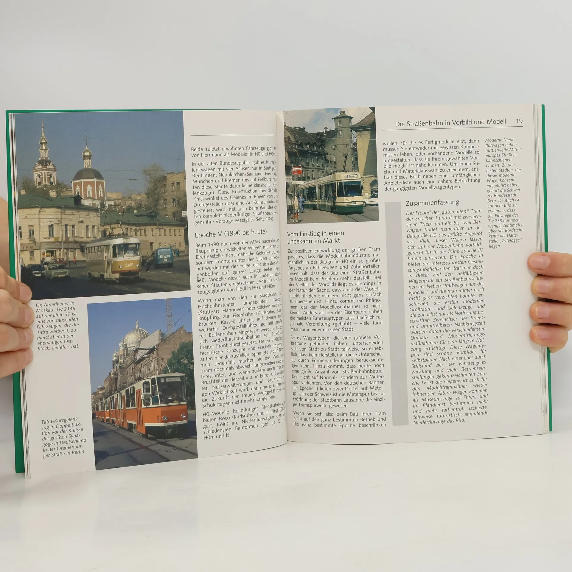 Strassenbahn im Modell Für den Modellbahnfreund, der sein ganz eigenes Bahnthema sucht, bietet diese bewegte Geschichte eine Fülle von interessanten Vorbildern und Anregungen. Obwohl den planerischen Bemühungen um die Normierung und Verödung unserer Innenstädte eine ganze Reihe von Bahnen zum Opfer gefallen sind, gibt es doch allein im deutschsprachigen Raum immer noch über achtzig aktive Straßenbahnbetriebe. Diese Buch zeigt zeigt, wie man die ganze Vielfalt auf kommunalen Schienen selbst dann zu sich nach Hause holen kann, wenn man glaubt, keinen Platz für eine Modellbahnanlage zu haben. Wie in der seit Jahren bewährten Vorauflage wird auch in diesem Buch erläutert wie man Schritt für Schritt - von der ersten Planung über den Anlagen- und Gleisbau bis hin zur "Eröffnungsfahrt unter Draht" - zu seinem ganz persönlichen Verkehrsbetrieb kommen kann. Damit die Freude an der kleinen Tram möglichst ungetrübt bleibt, hat der Autor sämtliche Bautipps zuvor auf ihre Funktionstüchtigkeit getestet. Auch der umfangreiche Wegweiser durch den immer unübersichtlicheren Markt der Baugrößen Z bis llm basiert soweit wie möglich auf persönlichen Recherchen und Praxiserfahrungen mit den angebotenen Produkten. So werden beispielsweise Bau und betriebliche Möglichkeiten des Luna-Tramgleissystems erläutert. Auch Fortgeschrittene und Sammler kommen auf ihre Kosten, denn neben Anregungen zum Aufbau einer Fahrzeugsammlung wird auch Vorschlägen zur Verfeinerung sowie zum Um- oder Selbstbau von Wagen breiter raum gegeben. Ein umfangreiches Bezugsquellenverzeichnis mit Post- und Internetadressen runden das Band ab.