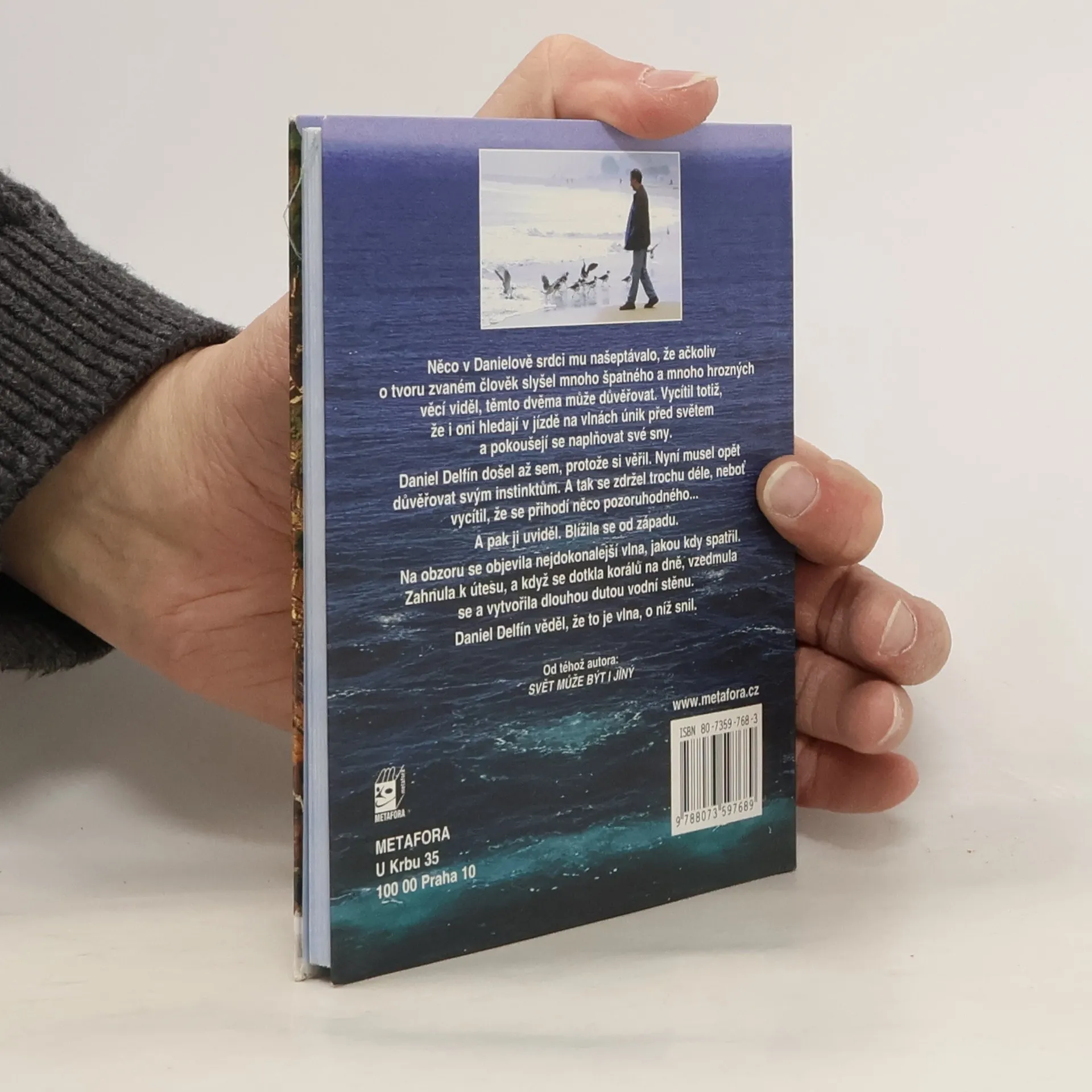Celé se to odehrává v moři. Celé je to něžné, mystické a romantické jako pohádka. A celé je to o delfínech. Jenže opravdu jenom o nich? Delfíní snílek, který tvrdošíjně opouští stádo, aby se vozil na vlnách a čekal na tu nejlepší vlnu svého života, jako by nám něco nebezpečně připomínal. A co teprve, když se od své rodiny odpoutá docela a vydá se na širé moře, kde ještě nikdo z jeho druhů nebyl a kde na něj prý číhá jistá smrt. Delfín Daniel však za svou vizí míří tak usilovně, že se nelekne ani žraloka, přežije setkání s obrovskou lodí a nakonec potká podivné dvounohé tvory, kteří surfují na prkně a také čekají na svou životní vlnu Kouzelný příběh je z rodu poetických vizí Richarda Bacha, jehož Jonathan Livingston Racek se dotýká našich srdcí stejně naléhavě Nedovol svým strachům, aby stály v cestě tvým snům. (životní krédo autora)