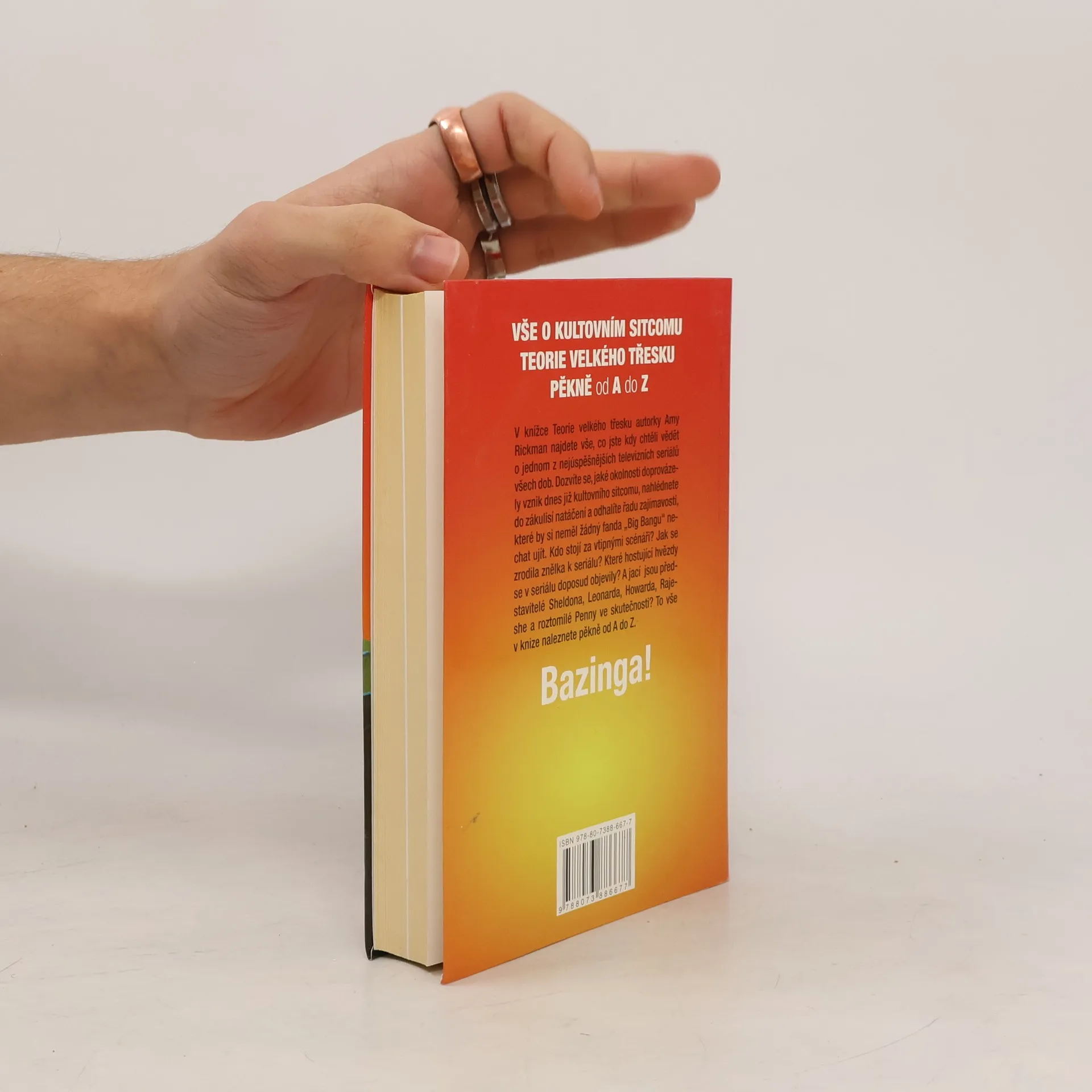 V knížce Teorie velkého třesku autorky Amy Rickman najdete vše, co jste kdy chtěli vědět o jednom z nejúspěšnějších televizních seriálů všech dob. Dozvíte se, jaké okolnosti doprovázely vznik tohoto sitcomu, o soukromém životě hlavních představitelů, nahlédnete do zákulisí a odhalíte řadu zajímavostí, které by měl každý fanda seriálu znát: kdo tvůrcům pomáhá s psaním scénářů, jak se zrodila znělka k seriálu, jak spolu herci vycházejí na place nebo jaké hostující hvězdy se v seriálu objevily.