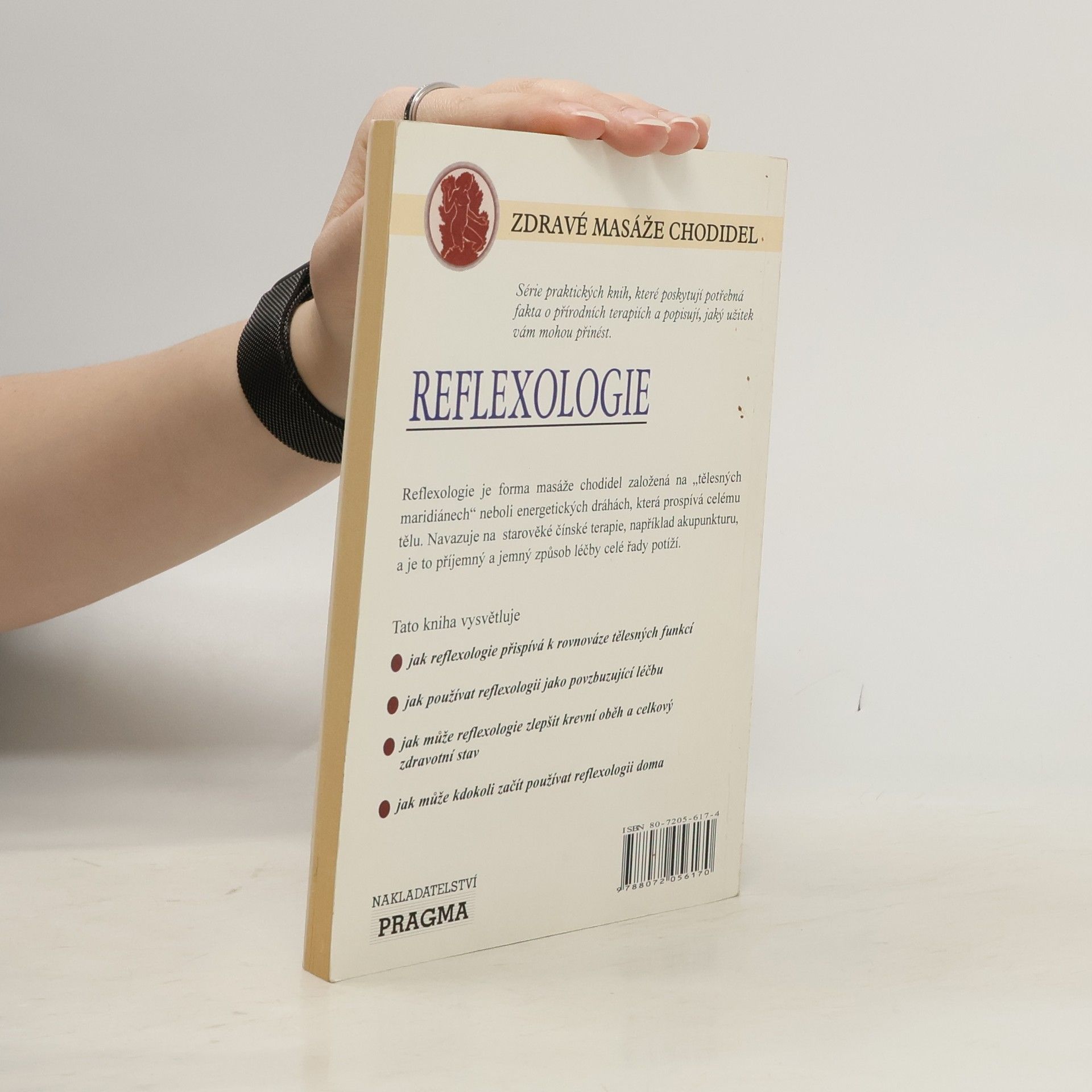Kniha předkládá základní informace o holistické neboli alternativní terapii a přírodních přístupech k zachování optimálního zdraví a vitality, a vysvětluje, jak příslušná terapie funguje. Reflexologie je forma masáže chodidel založená na tělesných meridiánech neboli energetických drahách, která prospívá celému tělu. Navazuje na starověké čínské terapie, například akupunkturu, a je to příjemný a jemný způsob léčby celé řady potíží. Kniha vysvětluje, jak reflexologie přispívá k rovnováze tělesných funkcí, jak ji lze používat jako povzbuzující léčbu, jak může zlepšit krevní oběh a celkový zdravotní stav a jak ji může začít kdokoli používat doma. Veškeré informace ale nemohou a nemají nahradit radu lékaře. (masáž chodidel pro celistvé zdraví)