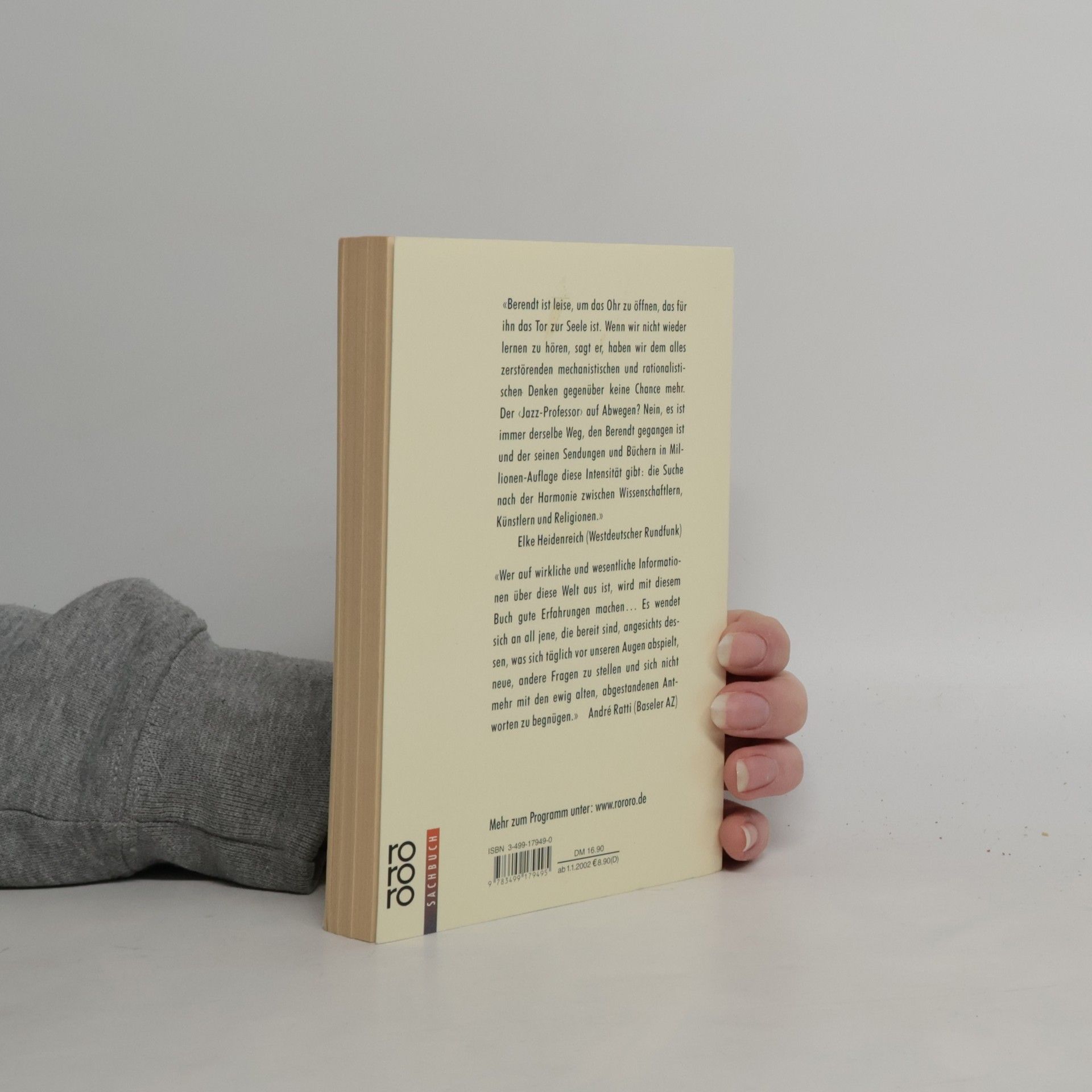 Ganze Welten und Systeme scheinbar gesicherter Erkenntnis sind im vergangenenen Jahrhundert zusammengebrochen. In dieser Situation ist der Klangcharakter der Welt eine der wenigen Sicherheiten, die wir besitzen: Die Welt ist Klang, ist Rhythmus und Schwingung. Behrendts Buch ist eine Reise durch Asien und Europa, durch Afrika und Lateinamerika, aber vor allem ist es eine Reise durch die unerforschten Regionen des Unbewußten, das sich uns als eine Landschaft aus Klängen darstellt.ores the effects of sound on consciousness.