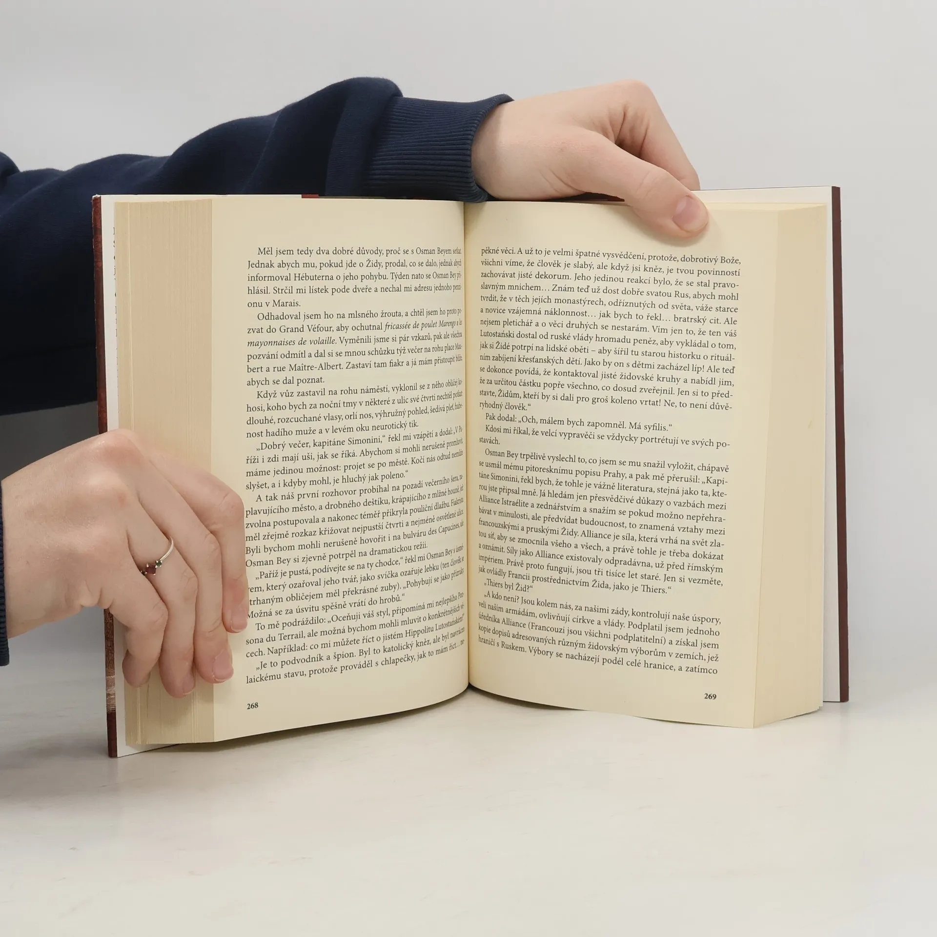 V románu-labyrintu proslulého autora se příběh s detektivní zápletkou prolíná s literaturou faktu. Ve svém bytě v nevábné pařížské čtvrti se v březnu 1897 probouzí starší muž a snaží se rozpomenout, kdo vlastně je. Metodou doktora Freuda, se kterým párkrát pojedl, si začíná vybavovat vlastní minulost italského a později francouzského policejního konfidenta, autora fiktivního konspiračního plánu, který pak v rukou jiných začal žít vlastním životem. Téměř všechny postavy (např. Alexandre Dumas) jsou historické, neméně skutečný je i hrdinou sepsaný pamflet.