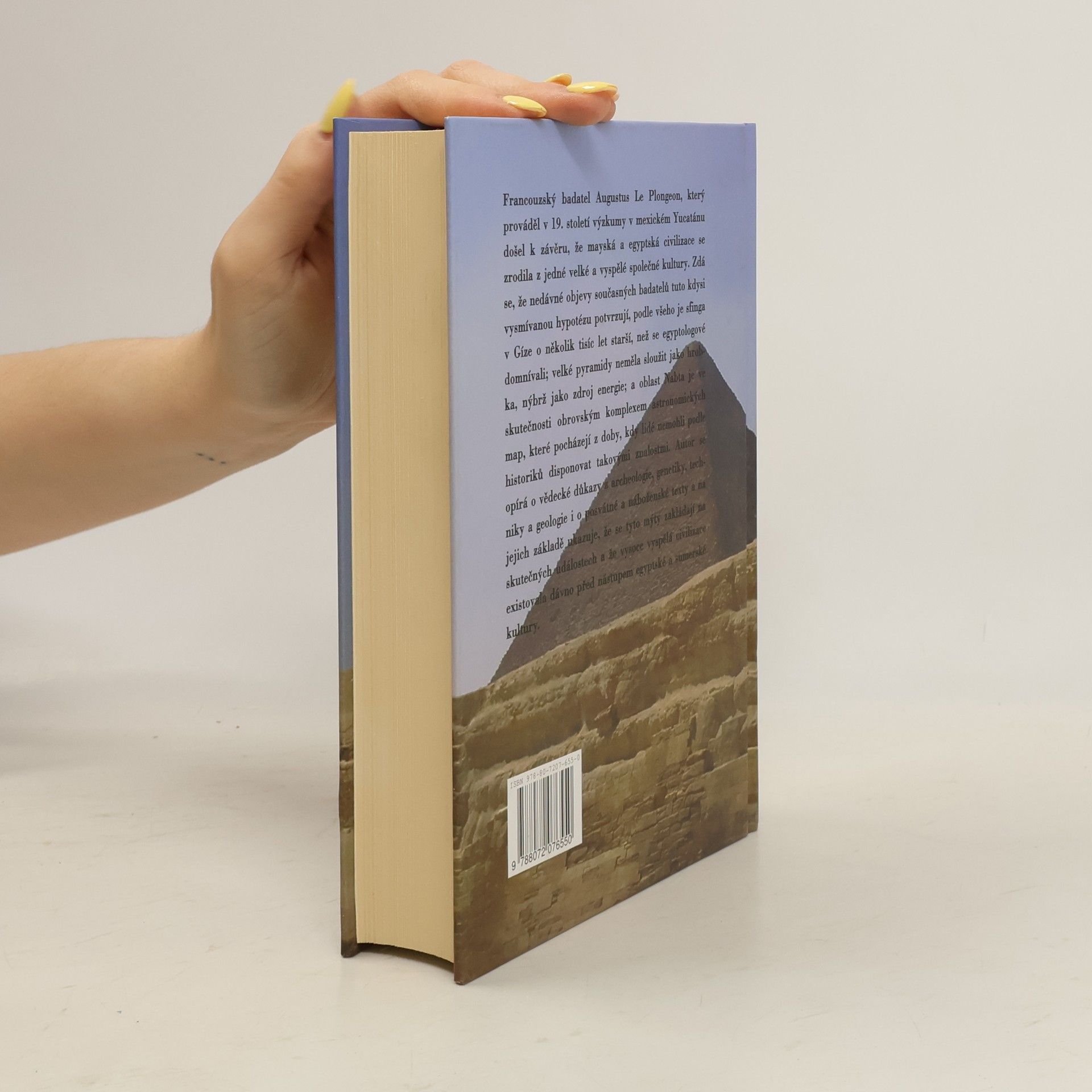 Podtitul: Tajemství nejstarších egyptských dějin. Francouzský badatel Augustus Le Plongeon, který prováděl v 19. stol. výzkumy v mexickém Yucatánu došel k závěru, že mayská a egyptská civilizace se zrodila z jedné velké a vyspělé společné kultury. Zdá se, že nedávné objevy současných badatelů tuto kdysi vysmívanou hypotézu potvrzují, podle všeho je sfinga v Gíze o několik tisíc let starší, než se egyptologové domnívali; Velká pyramida podle autora nesloužila jako hrobka, nýbrž jako zdroj energie; a oblast Nabta je ve skutečnosti obrovským komplexem astronomických map, které pocházejí z doby, kdy lidé nemohli podle historiků disponovat takovými znalostmi. Autor se opírá o vědecké důkazy z archeologie, genetiky, techniky a geologie i o posvátné a náboženské texty a na jejich základě ukazuje, že se tyto mýty zakládají na skutečných událostech a že vysoce vyspělá civilizace existovala dávno před nástupem egyptské a sumerské kultury.