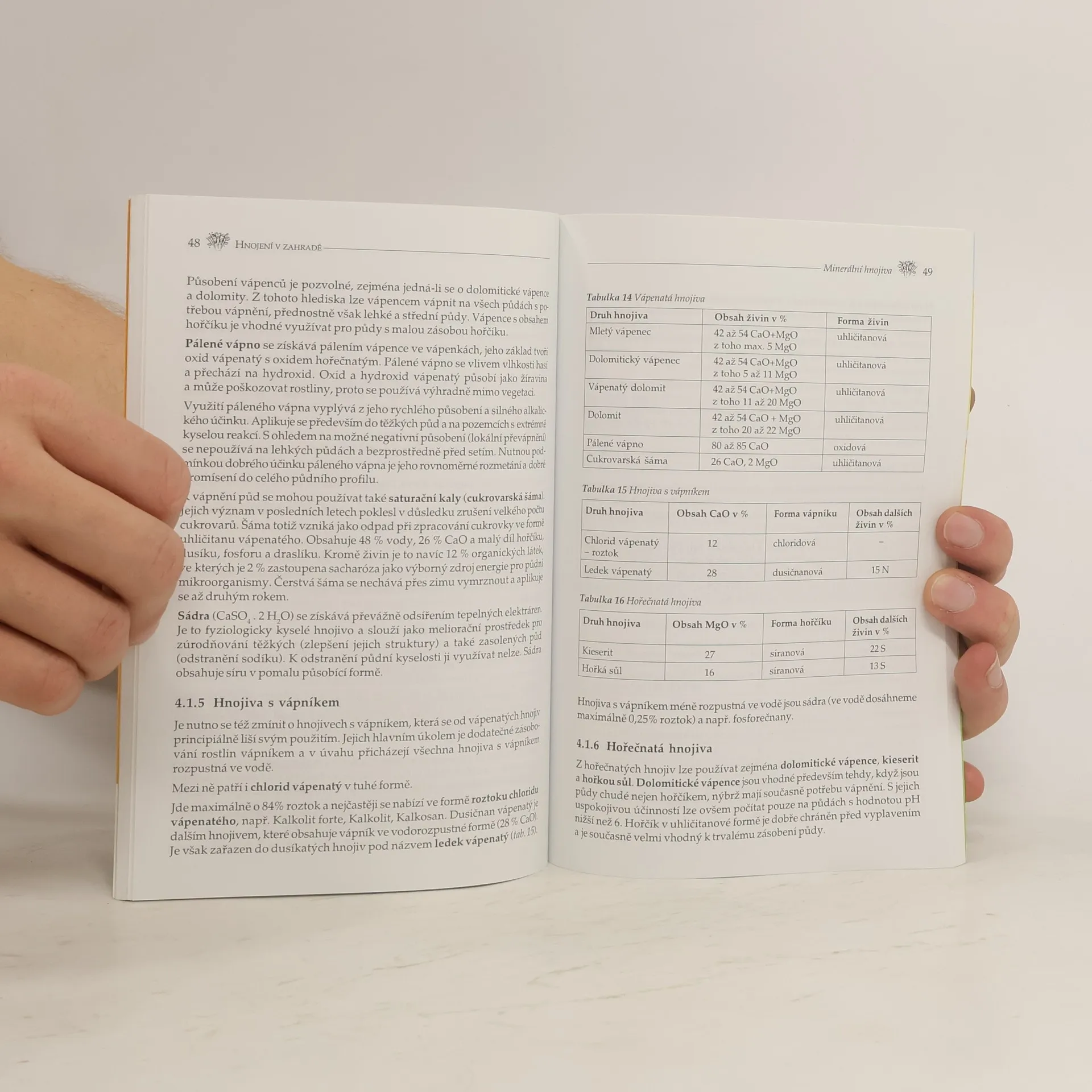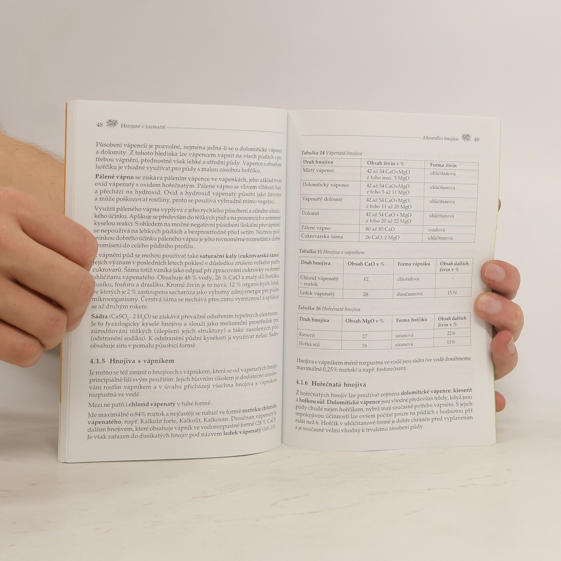 Publikace poskytuje přehledným způsobem veškeré důležité informace, týkající se zásad správného hnojení rostlin. Popisuje projevy nedostatku či naopak nadbytku živin v půdě na vývoji, vzhledu a plodivosti zeleniny, ovocných stromů, keřů a okrasných rostlin, rozebírá význam a účinnost organických hnojiv a zahradnických substrátů, uvádí nejosvědčenější sortiment registrovaných minerálních hnojiv. Autor využívá svých dlouholetých zkušeností s ověřováním jednotlivých přípravků a čtenáři podává nesmírně užitečné a do detailu propracované rady o dávkování, termínech a postupech, nákupu a skladování hnojiv, jejich mísitelnosti atd.