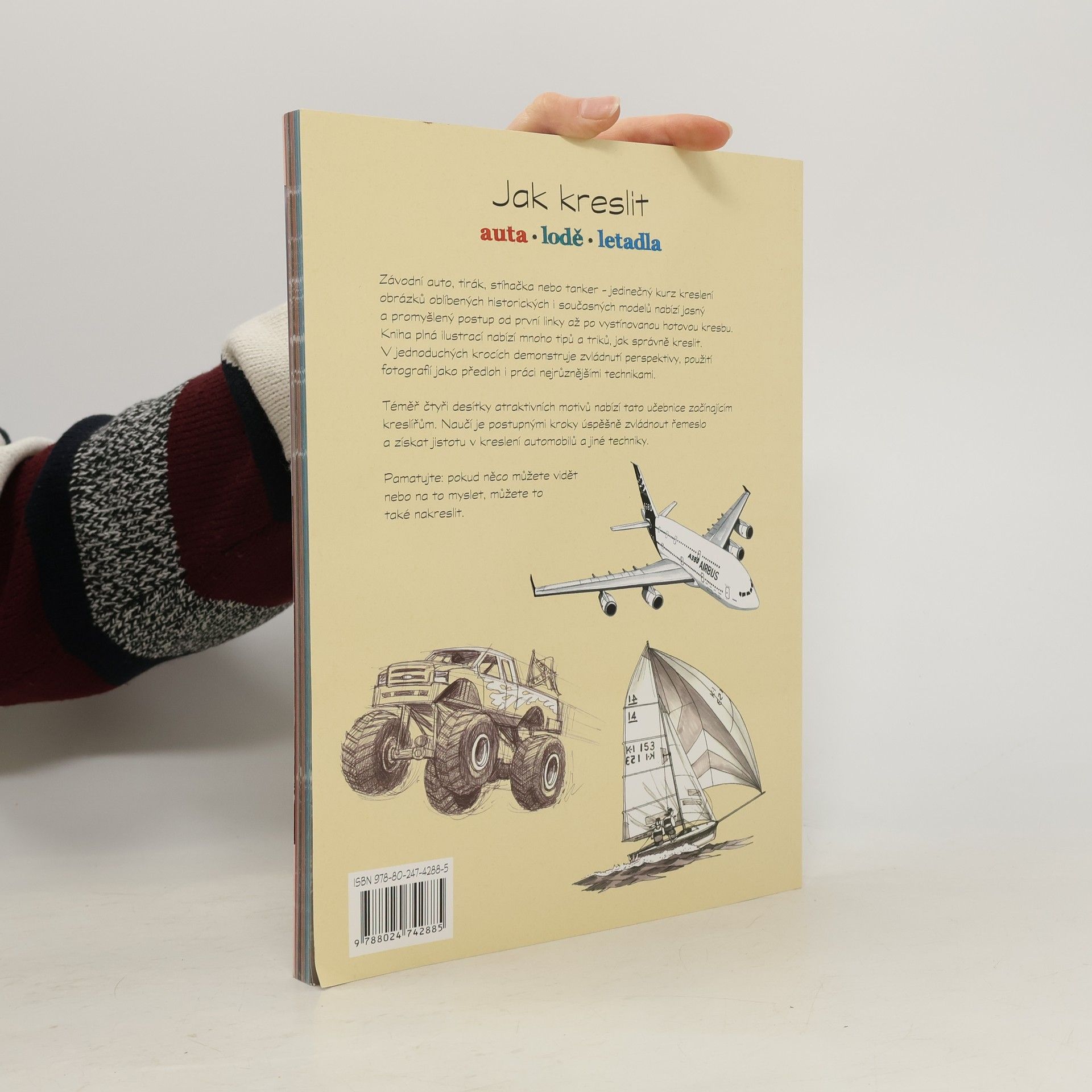 Nebaví vás kreslit kytičky, krajiny a portréty? Jedinečný kurz kreslení obrázků oblíbených historických i současných aut, letadel i lodí vás přenese do světa spáleného benzinu, rychlých kol, nadzvukových rychlostí i idylických přístavů - a hlavně nabízí jasný a propracovaný postup kreslení od první linky až po vystínovaný hotový motiv. K tomu doporučuje mnoho tipů a triků. V jednoduchých krocích demonstruje zvládnutí perspektivy, použití fotografií jako předloh i práci různými technikami. Závodní auto, tirák, stíhačka nebo tanker - téměř čtyři desítky oblíbených historických i současných motivů nabízí tato kniha začínajícím kreslířům, aby postupnými kroky úspěšně zvládli řemeslo a získali jistotu v kreslení obrázků ze světa technicky.