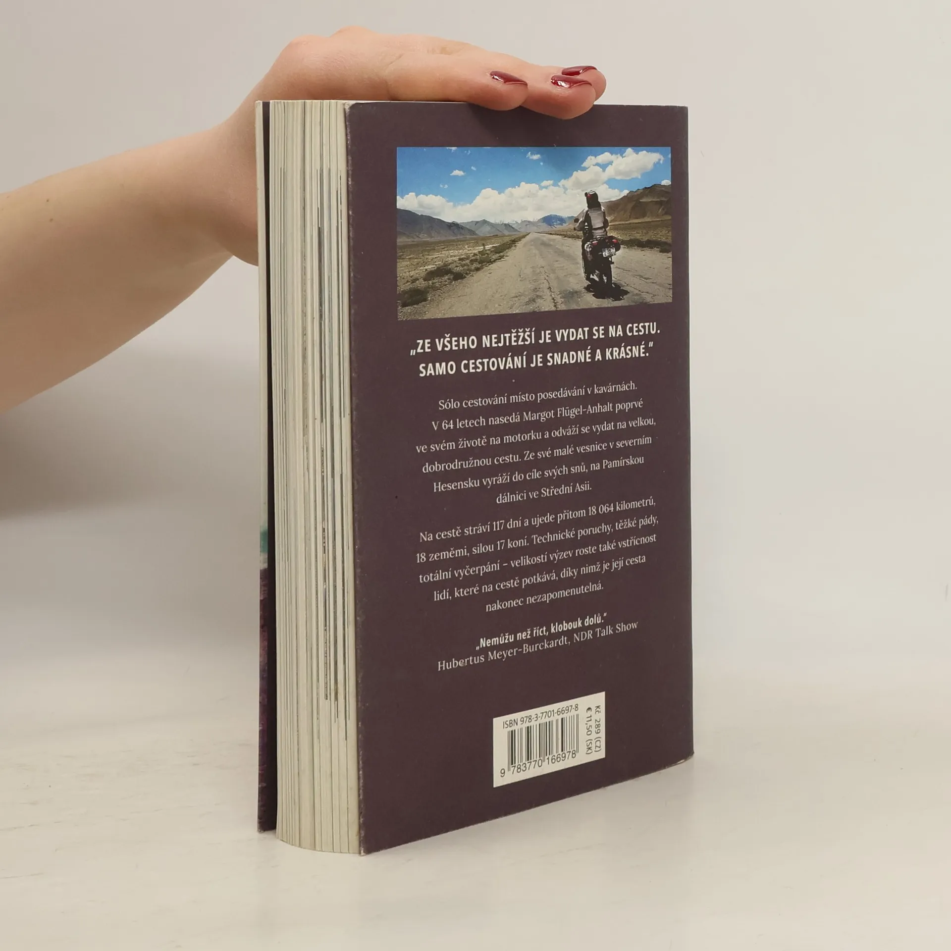 Volnost nezná slovo věk. Jak jsem v 64 letech poprvé ve svém životě nasedla na motorku a objela půlku světa. Sólo cestování místo posedávání v kavárnách. V 64 letech nasedá Margot Flügel-Anhalt poprvé ve svém životěna motorku a odváží se vydat na velkou, dobrodružnou cestu. Ze své malé vesnice v severním Hesensku vyráží do cíle svých snů, na Pamírskou dálnici ve Střední Asii. Na cestě stráví 117 dní a ujede přitom 18 064 kilometrů, 18 zeměmi, silou 17 koní. Technické poruchy, těžké pády, totální vyčerpání – velikostí výzev roste také vstřícnost lidí, které na cestě potkává, díky nimž je její cesta nakonec nezapomenutelná. Nejde pouze o překročení hranic osmnácti zemí, ale současně i o překonávání hranic mezi cizími lidmi, jejich jazyky a kulturami – a také o nikdy nekončícím překonávání vlastních hranic