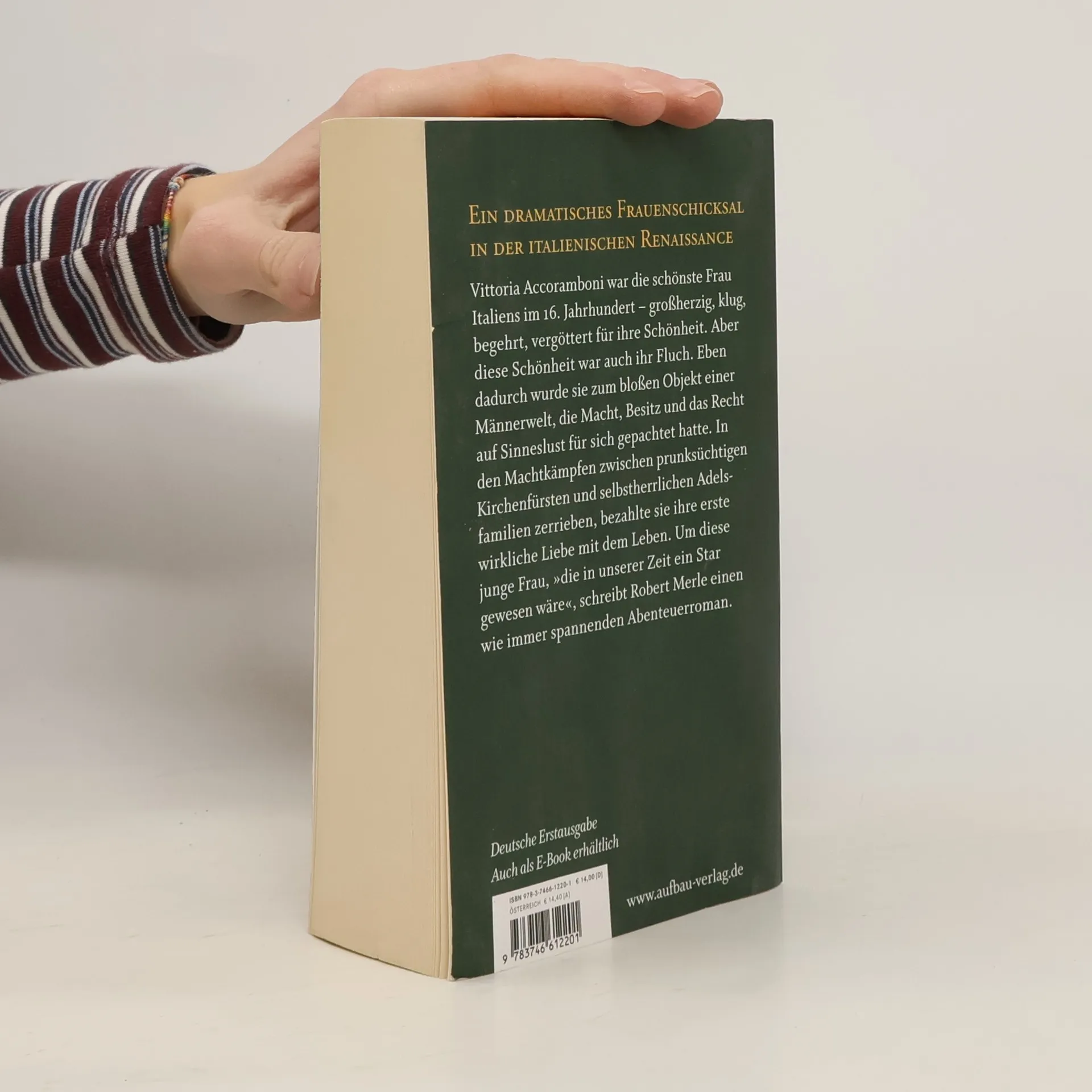 „In unserer Zeit wäre Vittoria ein Star gewesen“, schreibt Robert Merle über seine tragische Heldin, die als eine der schönsten Frauen der italienischen Renaissance galt. Ihre blendende Schönheit macht sie zum Objekt der Begierde. Die Söhne der italienischen Aristokratie liegen Vittoria Accoramboni zu Füßen, so daß der Tochter eines Majolikafabrikanten der Aufstieg in die ersten Ränge der römischen Gesellschaft sicher scheint. Der finanzielle Ruin ihrer Familie erzwingt jedoch die rasche Heirat mit dem ungeliebten Neffen des Kardinals Montalto. Ausgerechnet im Hause des sittenstrengen Kardinals begegnet Vittoria schließlich ihrer großen Liebe, dem Fürsten Orsini, und findet in dem kultivierten Oberhaupt einer einflußreichen Adelsfamilie einen ihr ebenbürtigen Partner. Der Mord an Vittorias Ehemann läßt die beiden Liebenden, obwohl unschuldig, ins Zwielicht geraten, und die kurz darauf vollzogene Ehe mit Orsini wird vom Papst persönlich annulliert. Als der Papst überraschend stirbt und Kardinal Montalto als sein Nachfolger in den Vatikan einzieht, scheint der Weg in die Zukunft endlich geebnet. Doch nur einen Sommer lang währt das Glück in der Villa am Gardasee, bevor mörderische Gewalt über Vittoria hereinbricht.