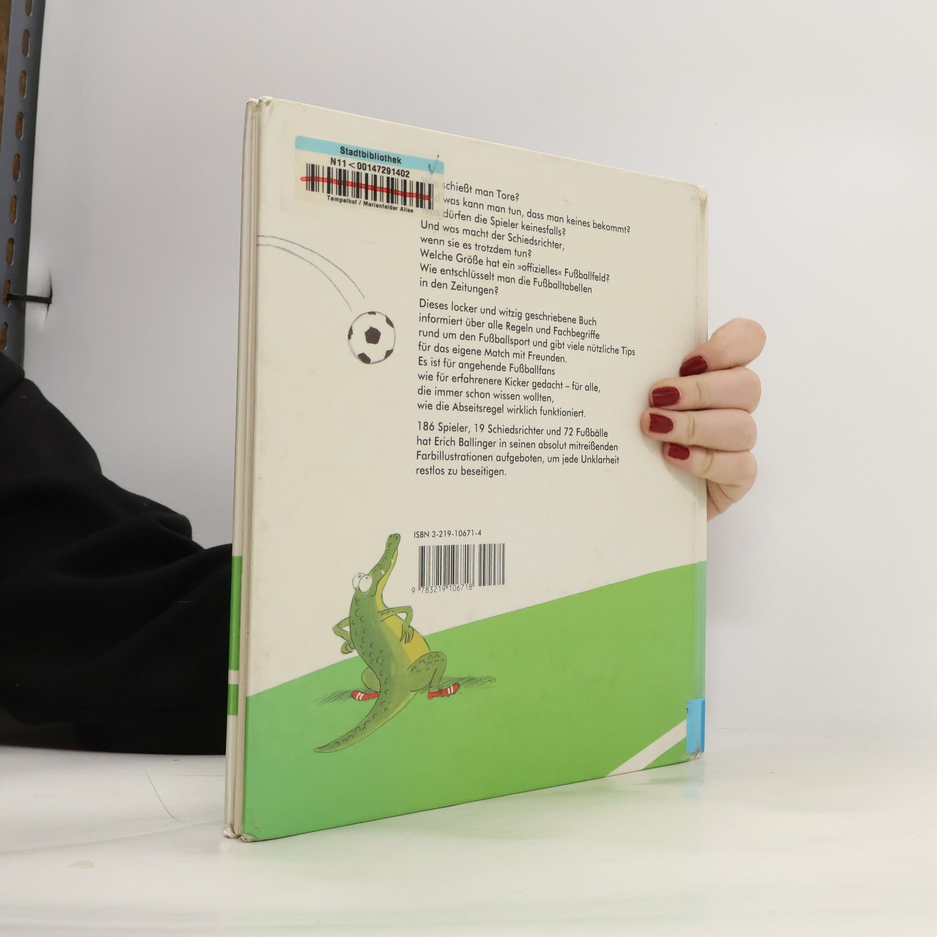 Mit lustigen Zeichnungen und einem Comic-Krokodil, das seine Kommentare abgibt, werden Regeln, Fachbegriffe und Tips fürs Fussballspielen vorgestellt.