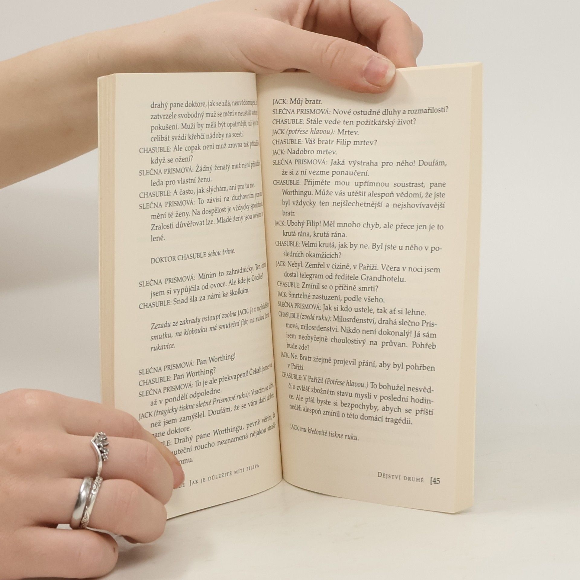 Anglický autor irského původu uvádí svou nejúspěšnější komedii podtitulem Lehkovážná komedie pro vážné lidi. Konverzační komedie o lásce a námluvách ve vyšší anglické společnosti, která skýtá autorovi nepřebernou studnici inspirace. Autor nešetří břitkým humorem. Co replika to vtip či bonmot. Stejně vtipné jsou i situace, které přinášejí neustále nové překvapivé zvraty. To vše a nenapodobitelný suchý anglický humor láká divadelníky k novým a novým inscenacím. Na své si přijde i čtenář této hry.
