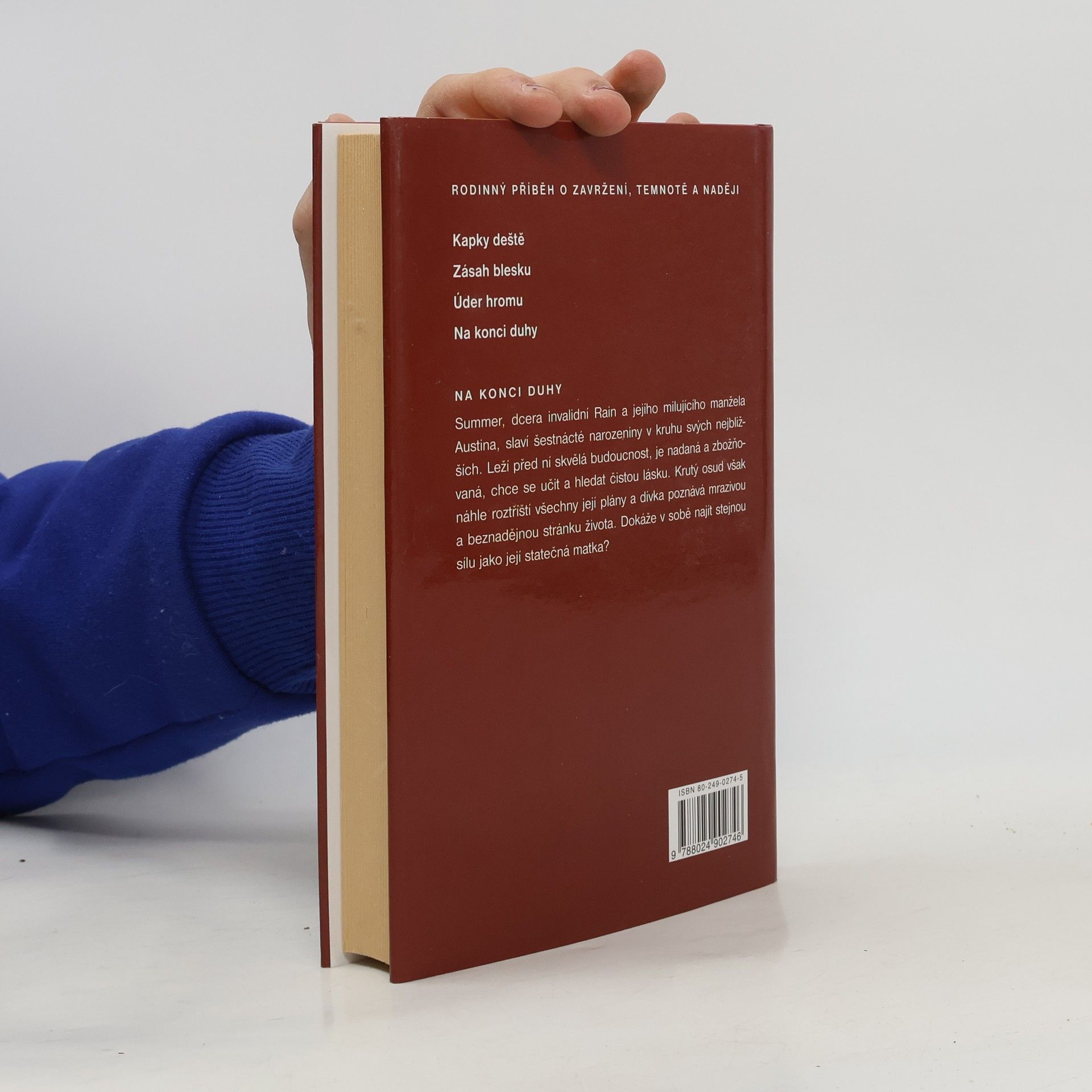 Tetralogie: Kapky deště, Zásah blesku, Úder hromu, Na konci duhy Třetí část románové ságy představuje hrdinku jako dědičku značného majetku, který jí ale nepřinese štěstí a naopak prohloubí roztržku s ostatní rodinou. O své dědictví bojuje vysilující zápas jedině kvůli přání své babičky a hodlá se zcela znechucená majetku vzdát, když dojde k neštěstí, které změní celý její život. Po pádu z koně a následném ochrnutí se rozplynou všechny její sny a plány a dívka propadá zoufalství. Pozná však člověka, kterého nezaslepil její majetek, ale který ji chce vrátit svou upřímnou a obětavou láskou zpátky do života.