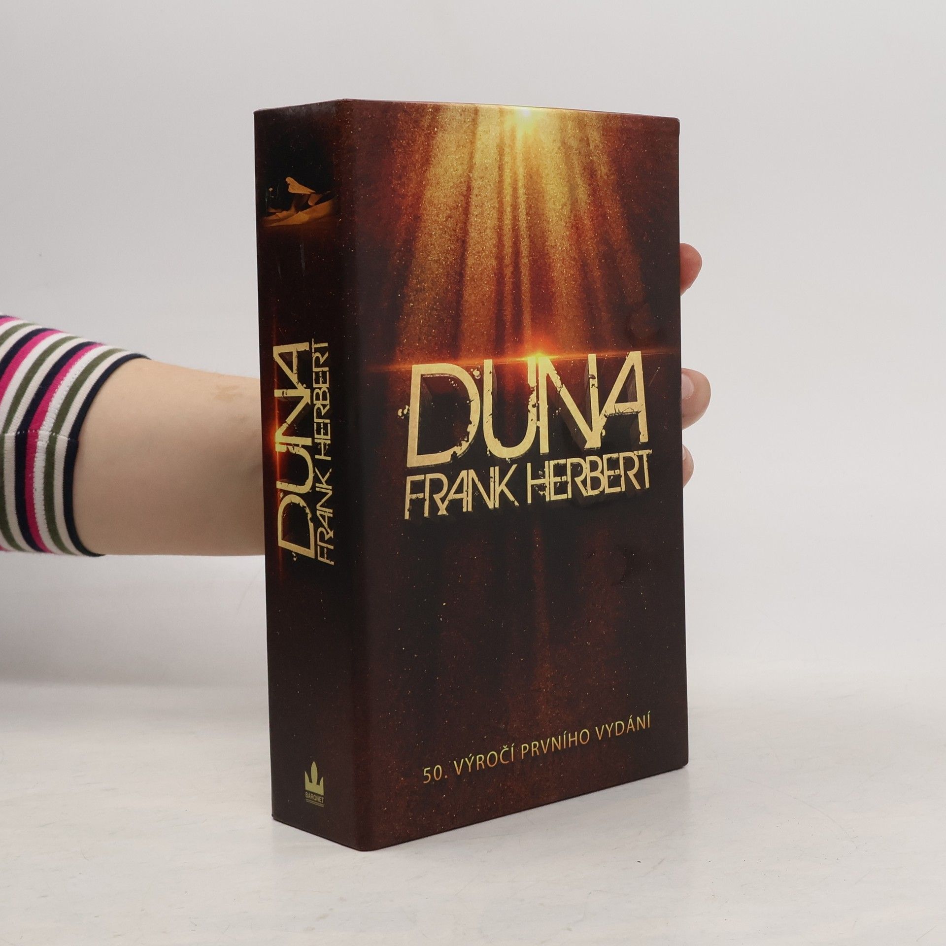 Limitovaná edice v dárkovém boxu k 50. výročí prvního vydání. Kultovní SF sága Duny, kterou mnozí znají z některé její filmové adaptace, se rodila nesnadno. Její první díl, román Duna, který později proslavil jednoho z dnes již klasiků SF literatury, Franka Herberta, vyšel v roce 1963 v časopise Analog pod názvem Svět Duny. Tehdy vyšla ovšem jen jeho část. Díky obrovskému ohlasu u čtenářů napsal autor vzápětí pokračování příběhu Prorok Duny. Pro knižní vydání (1965) obě části spojil a výstižně a stručně nazval Duna. Úspěch románu o pouštní planetě Arrakis a jejím pokladu stále rostl, hned v následujícím roce (1966) získal jak cenu Nebula, tak Hugo. Frank Herbert své dílo rozšiřoval a vytvořil tak předobraz nové epiky v žánru SF. V letech 1969 až 1981 vyšlo dalších pět pokračování ságy popisujících boje o ovládnutí Arrakisu. Až předčasná autorova smrt ukončila i osudy hrdinů ságy, jejichž pokračování však zůstalo otevřeno. Přesto jeho smrtí příběhy o Duně nekončí. Frankův syn Brian, spolu s dalším vynikajícím SF autorem Kevinem J. Andersonem (slavná Akta X), převzal jeho úkol a k neutuchající potěše příznivců a díky jejich zájmu rozšířil ságu o další díly.