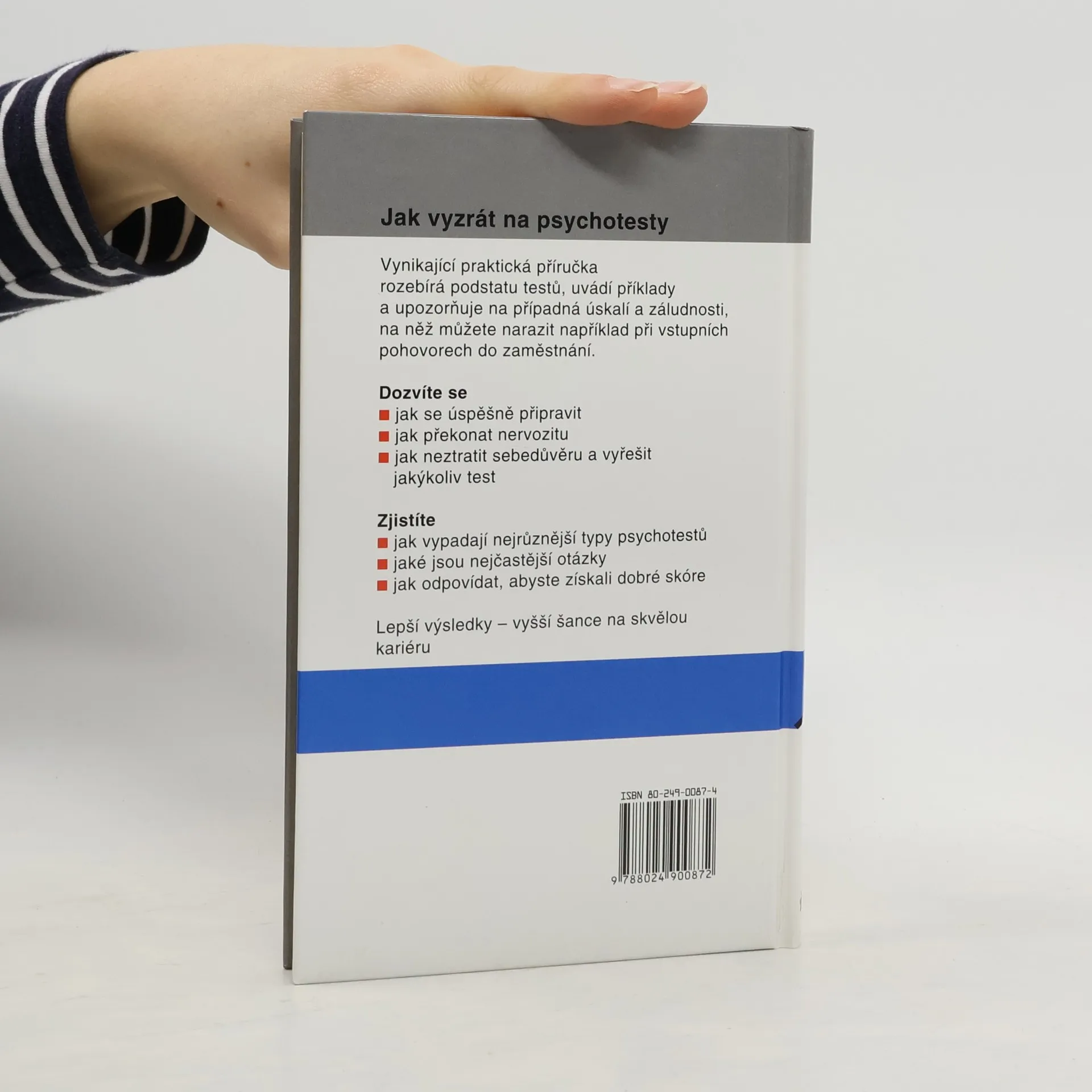 - Praktické procvičovací materiály Jak vyzrát na psychotesty Vynikající praktická příručka rozebírá podstatu testů, uvádí příklady a upozorňuje na případná úskalí a záludnosti, na něž můžete narazit například při vstupních pohovorech do zaměstnání. Dozvíte se · jak se úspěšně připravit · jak překonat nervozitu · jak neztratit sebedůvěru a vyřešit jakýkoliv test Zjistíte · jak vypadají nejrůznější typy psychotestů · jaké jsou nejčastější otázky · jak odpovídat, abyste získali dobré skóre Lepší výsledky - vyšší šance na skvělou kariéru