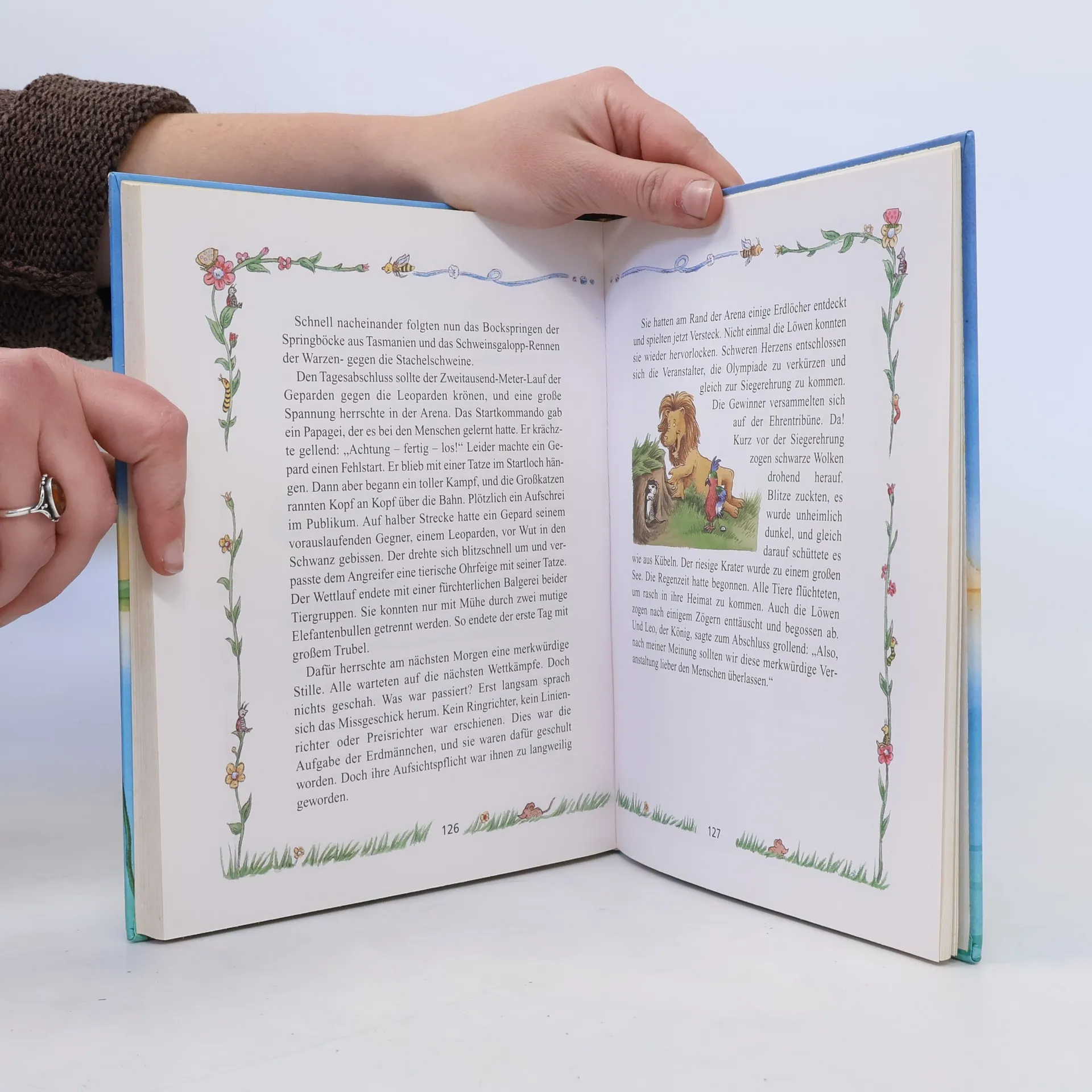Die Giraffe Gisela verrenkt sich ihren langen Hals. Ohne die hilfsbereiten Äffchen würde sie wohl verdursten. Der Biber Balduin, bester Baumbeißer seiner Kolonie, bekommt eines Tages fürchterliche Zahnschmerzen. Zum Glück gibt es den weisen Uhu Ulrich, der ihm aus der Klemme hilft. Der Laubfrosch Fridolin verliert kurz vor dem großen Froschkonzert seine Stimme - da ist guter Rat teuer. - Liebevoll illustrierte Tiergeschichten zum Vorlesen und Selberlesen. - Jede Menge Spaß und Grund zum Lachen bieten die kunter-bunten Tiergeschichten. - Für Kinder ab 5 Jahren