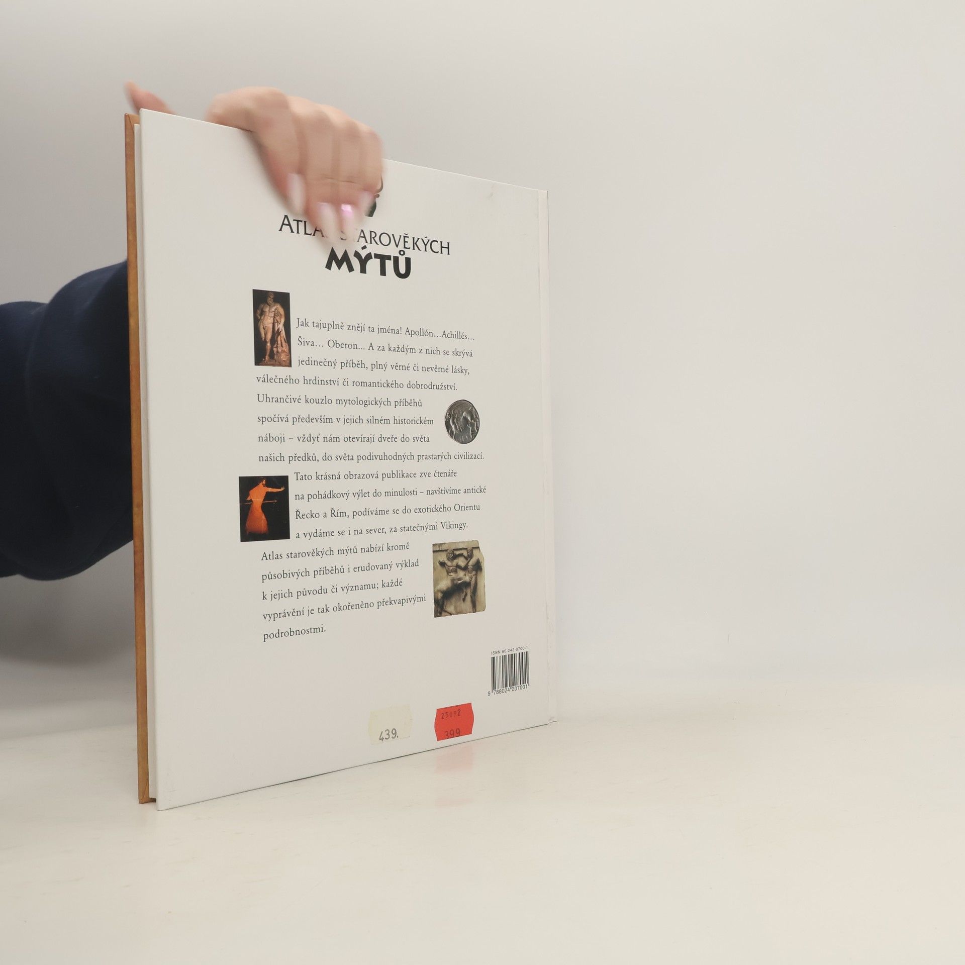 Tato krásná obrázková publikace zve čtenáře na pohádkový výlet do minulosti - navštívíme antické Řecko a Řím, podíváme se do exotického Orientu a vydáme se i na sever, za statečnými Vikingy. Atlas starověkých mýtů nabízí kromě působivých příběhů i erudovaný výklad k jejich původu či významu; každé vyprávění je tak okořeněno překvapivými podrobnostmi.