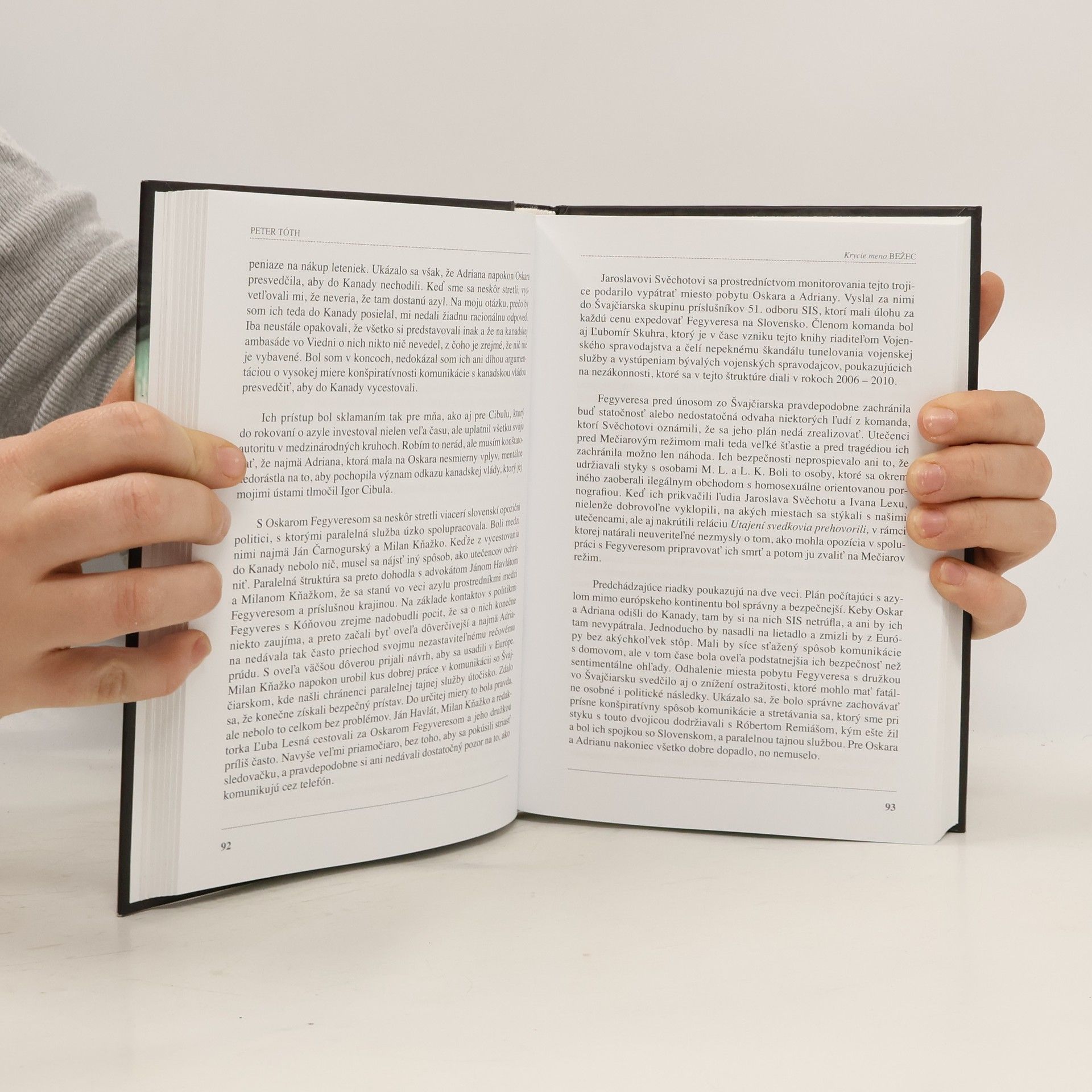 Prvá kniha o zákulisí slovenskej tajnej služby, politiky a podsvetia. Kniha Krycie meno Bežec obsahuje množstvo doposiaľ nepublikovaných informácií zo zákulisia tajných služieb, slovenskej politiky a bratislavského podsvetia. Odhaľuje existenciu takzvanej paralelnej tajnej služby, neobvyklej organizácie spravodajských dôstojníkov, usilujúcich sa dokumentovať prešľapy oficiálnej SIS. Odpočúvanie centrál opozičných strán, horiace autá, výbuchy a záhadné zmiznutia ľudí. Aj taká bola nedávna história 90-tych rokov minulého storočia. Na jej pozadí sa odvíja autobiografický príbeh Petra Tótha, ktorý bol ako novinár pod drobnohľadom tajnej služby, neskôr sa stal jej príslušníkom a nakoniec aj riaditeľom kontrarozviedky SIS. Rozpráva o tom, ako našiel ukrývajúceho sa Oskara Fegyveresa, korunného svedka únosu prezidentovho syna, a ponúka zasvätený pohľad na vraždu jeho najlepšieho priateľa Róberta Remiáša. Autor sa nevyhýba ani kontroverzným udalostiam zo svojho života. Otvorene popisuje svoj kariérny vzostup, ale aj strmý pád. Bežec umožňuje bližšie spoznať jeho autora a ponúka nekonvenčné videnie sveta tajných služieb.