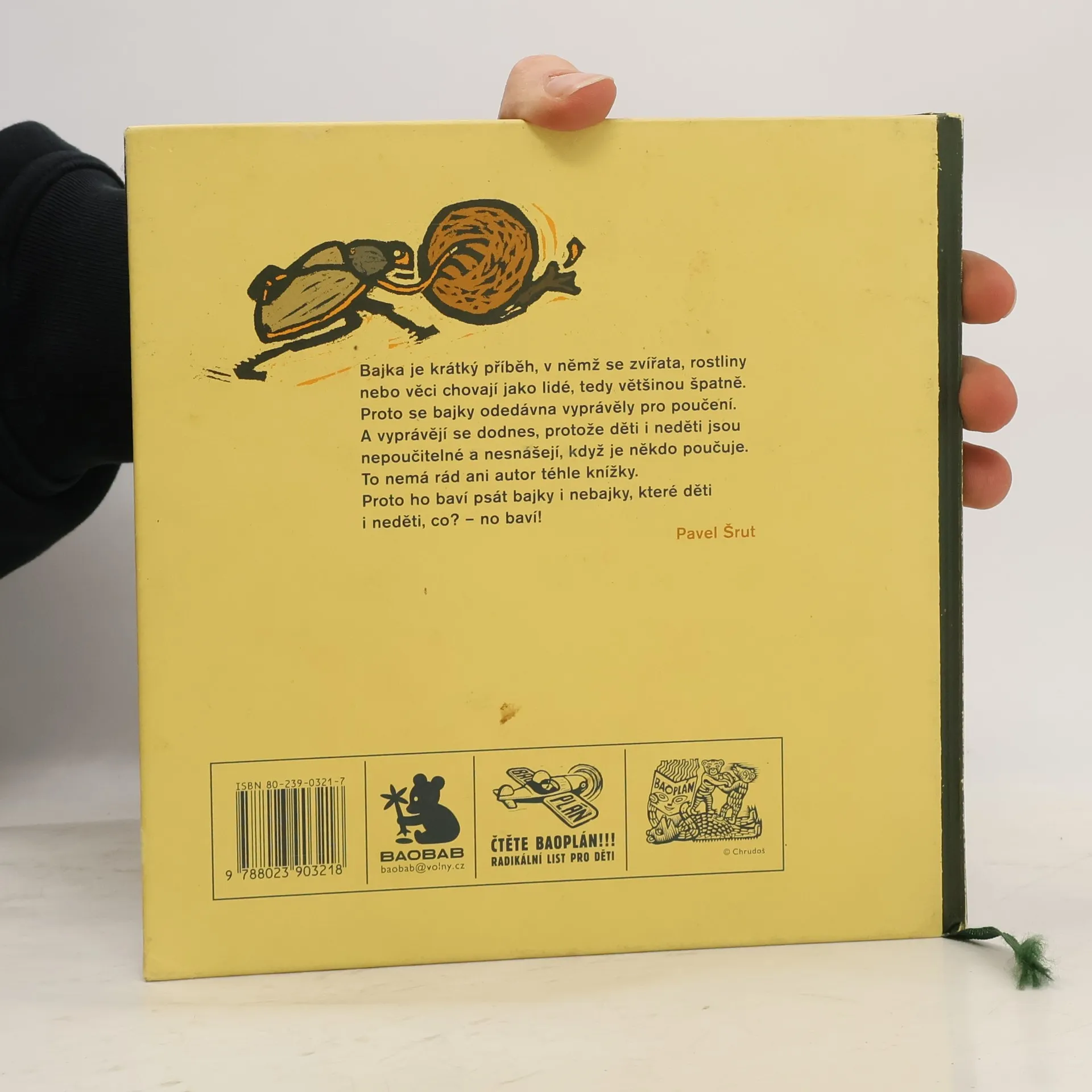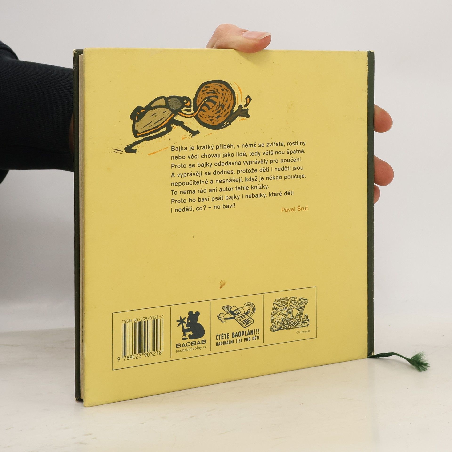 Bajka je krátký příběh, v němž se zvířata, rostliny nebo věci chovají jako lidé, tedy většinou špatně. Proto se bajky odedávna vyprávěly pro poučení. A vyprávějí se dodnes, protože děti i neděti jsou nepoučitelné a nesnášejí, když je někdo poučuje. To nemá rád ani autor téhle knížky. Proto ho baví psát bajky i nebajky, které děti i neděti, co? – no baví!