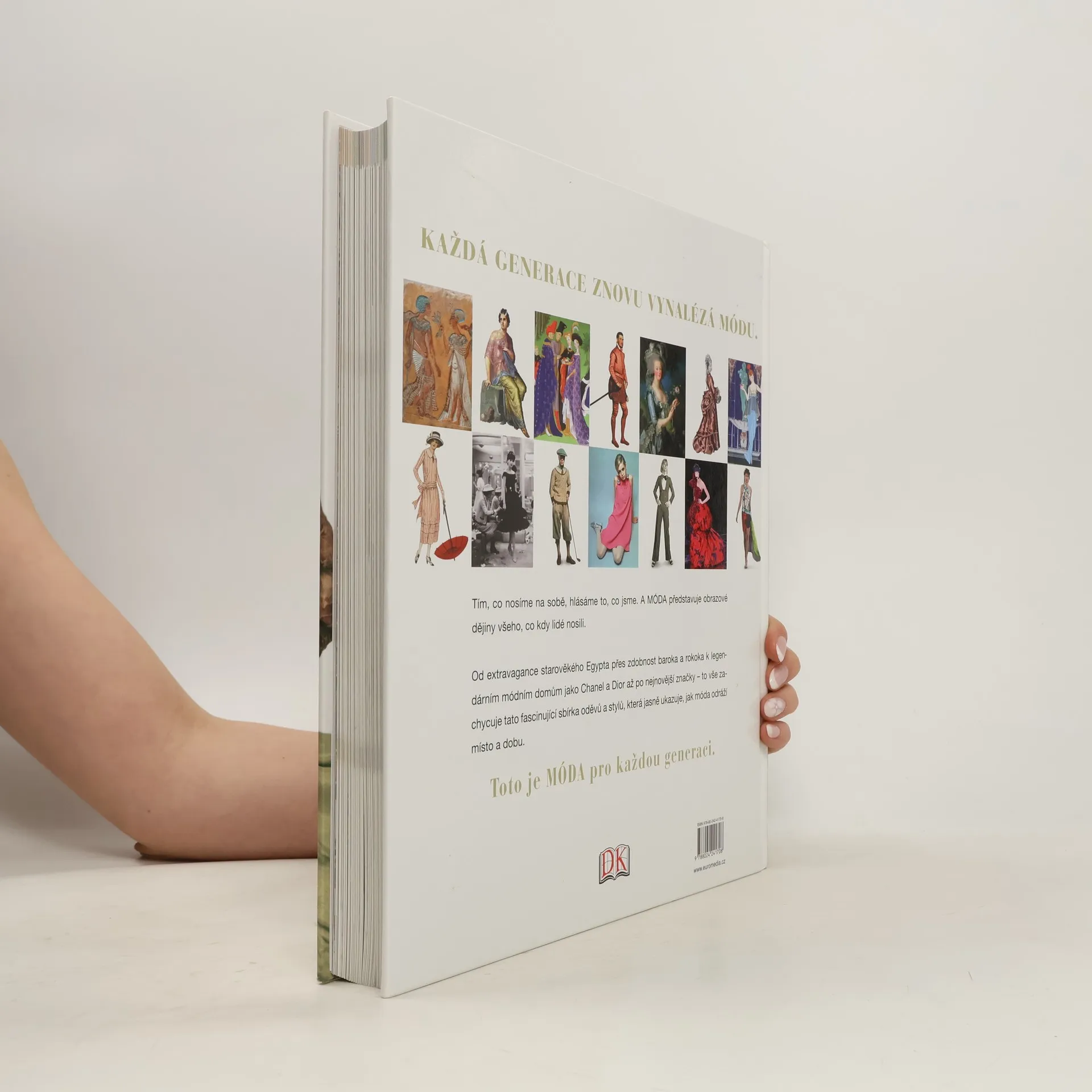 Fascinující obrazový průvodce dějinami světové módy, od starověku po současnost. Od výstředních rób starého Egypta přes renesanci, baroko a proslulé módní domy jako Chanel či Dior po nejmodernější světové značky nabízí tato encyklopedie vyčerpávající přehled všeho, co kdy lidé nosili. Pozoruhodná publikace zve na výpravu do minulosti a prostřednictvím vývoje odívání poskytuje plastický obraz místa a doby.