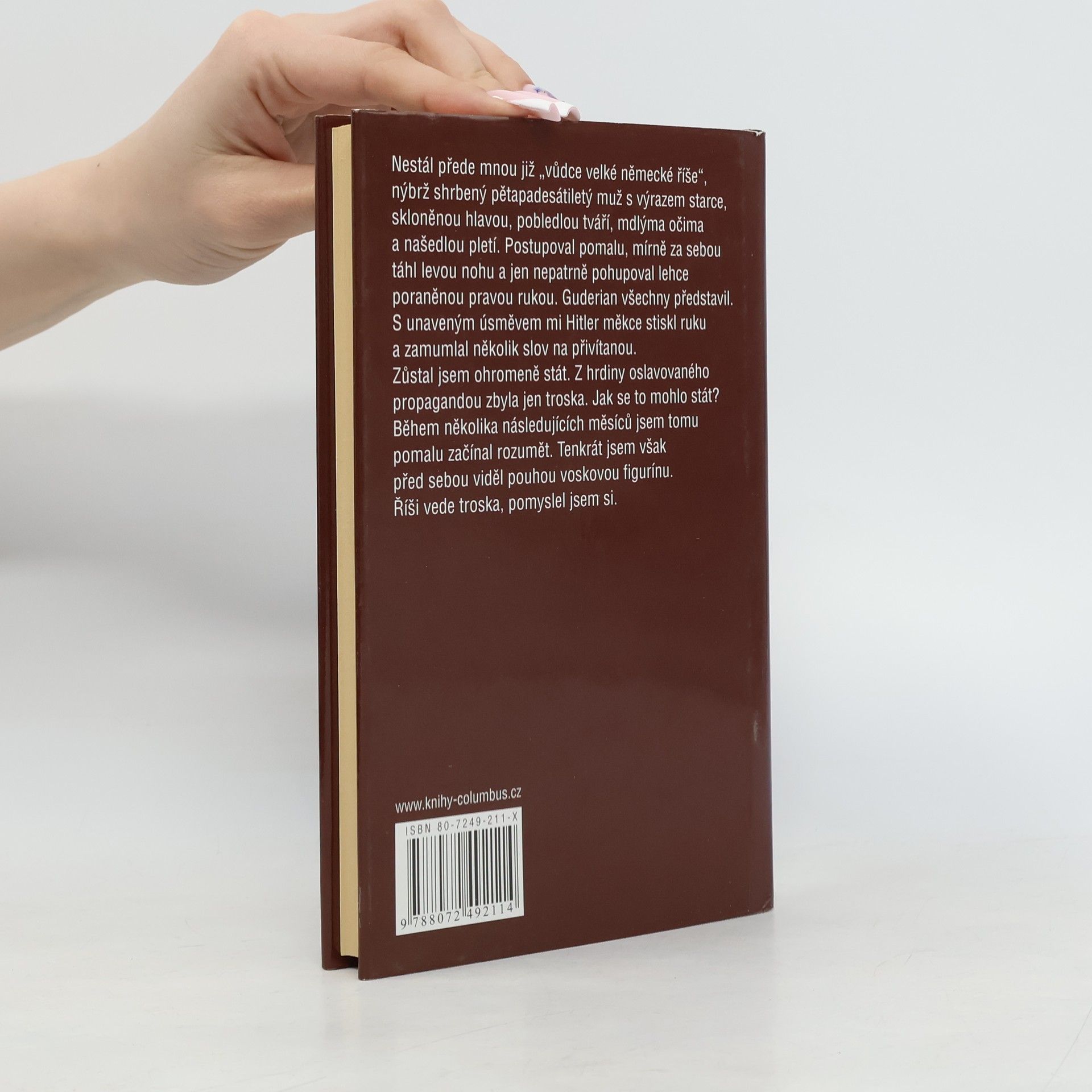 23. července 1944 - 29.dubna 1945. Knih o druhé světové válce a o Hitlerovi byla po celém světě napsána a vydána už spousta. Jen málo jich je ale tak osobních, tak těsně spjatých s postavou říšského vůdce jako publikace Bernda Freytaga von Loringhoven, který se v posledních dnech války ocitl - jak už název této knihy napovídá - přímo v Hitlerově podzemním doupěti! Očima bývalého důstojníka wehrmachtu tak můžeme nahlédnout válečné operace, dostat se až k obleženému Stalingradu, táhnout do Polska, k Taganrogu, do Berlína, abychom se s ním pak ocitli v pekle Hitlerova bunkru, nad nímž už duněla střelba Rudé armády, zatímco jednotky generála Wencka se ještě zoufale pokoušely o záchranu... Prostřednictvím otevřené zpovědi, v níž se autor nevyhýbá ani upřímnému zvážení vlastní viny, se nám naskýtá naprosto neobvyklý niterný pohled na podstatu, nesmyslnost a krutost války.