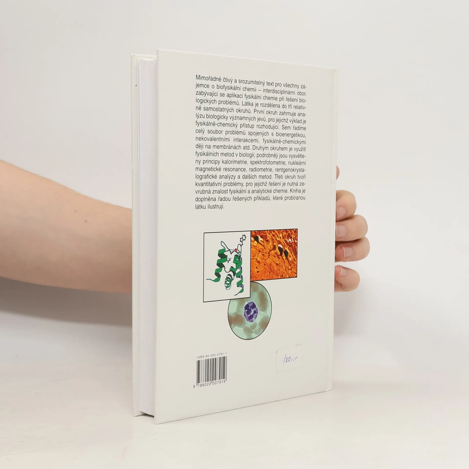 Biofysikální chemie je interdisciplinární obor, který aplikuje fysikálně-chemické přístupy na biologické problémy. Obsah knihy je rozdělen do tří hlavních oblastí. První se zaměřuje na analýzu biologicky významných jevů, kde je fysikálně-chemický přístup klíčový. Zahrnuje témata jako bioenergetika, nekovalentní interakce, struktura vody, kinetická analýza biologických procesů a děje na membránách. Druhá oblast se věnuje využití fysikálních metod v biologii, včetně principů a aplikací spektrofotometrie, fluorimetrie, kalorimetrie, cirkulárního dichroismu, rentgenové krystalografie, nukleární magnetické resonance, radiometrie a výpočetních metod pro určování prostorové struktury biomakromolekul. Třetí oblast, která prostupuje celou učebnicí, se zaměřuje na kvantitativní problémy v biochemických a biologických laboratořích, přičemž jednotlivé kapitoly obsahují řešené příklady. Kniha také obsahuje krátké fejetony, které usnadňují porozumění obtížné látce. Je určena studentům přírodovědných oborů a pracovníkům v biochemii, biologii, biomedicíně a příbuzných oborech, stejně jako všem, kdo se chtějí blíže seznámit s biofysikální chemií.