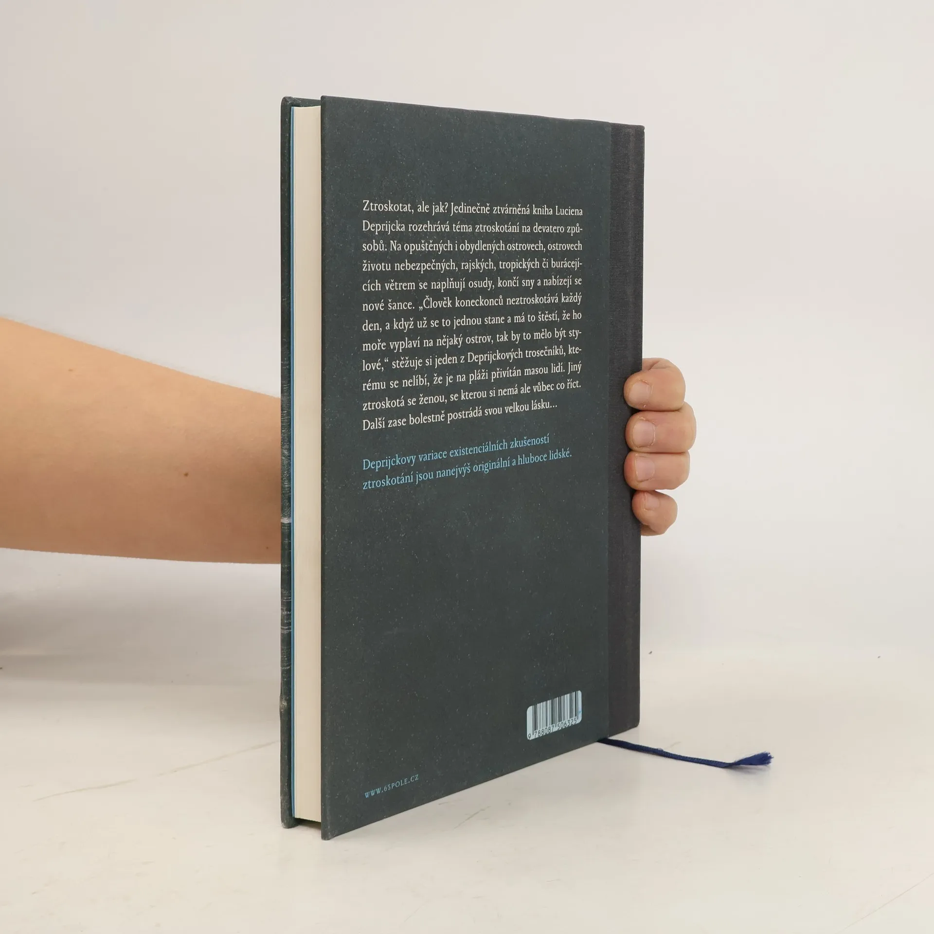 Ztroskotat, ale jak? Jedinečně ztvárněná kniha Luciena Deprijcka rozehrává téma ztroskotání na devatero způsobů. Na opuštěných i obydlených ostrovech, ostrovech životu nebezpečných, rajských, tropických či burácejících větrem se naplňují osudy, končí sny a nabízejí se nové šance. 18 ostrovních epizod spolu se sugestivními ilustracemi Christiana Schneidera tvoří ucelené umělecké dílo. Kniha podněcuje touhu po neznámých světech a vypráví o setkání se sebou samým, s lidmi i zásadními otázkami. Povídky plné dramatických, tajemných či absurdně komických situací, nepostrádají oproti klasickým robinsonádám ženské hrdinky a nabourávají zažitá trosečnická klišé. „Člověk konec konců neztroskotá každý den, a když už se to stane … a člověk má to štěstí, že je vyplaven na ostrově, tak by to přece mělo být stylové“, stěžuje si jeden z Deprijckových ztroskotanců, kterému se nelíbí, že je na pláži přivítán masou lidí. Deprijckovy variace existencionálních zkušeností ztroskotání jsou nanejvýš originální a hluboce lidské. -- Christian Schneider se narodil v Darmstadtu, vyrůstal ve Frankách, studoval ilustraci na HAW (Vysoké škole aplikovaných věd) v Hamburku. Tam dnes žije jako ilustrátor na volné noze.