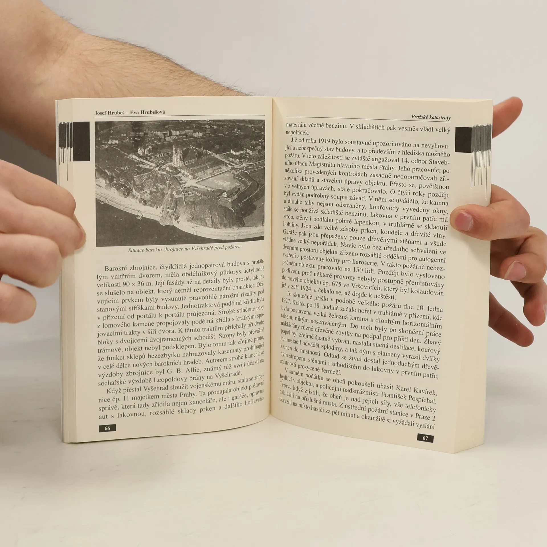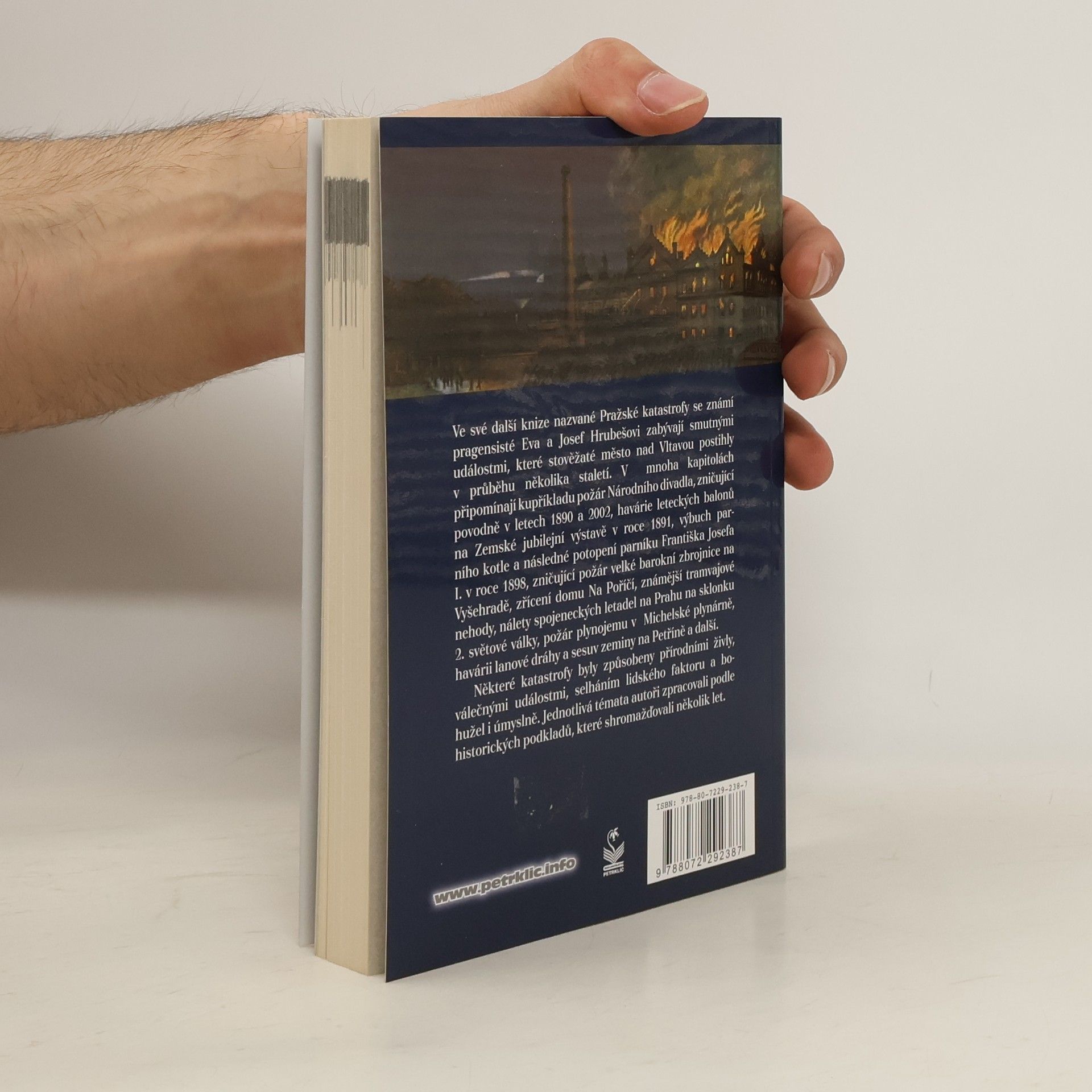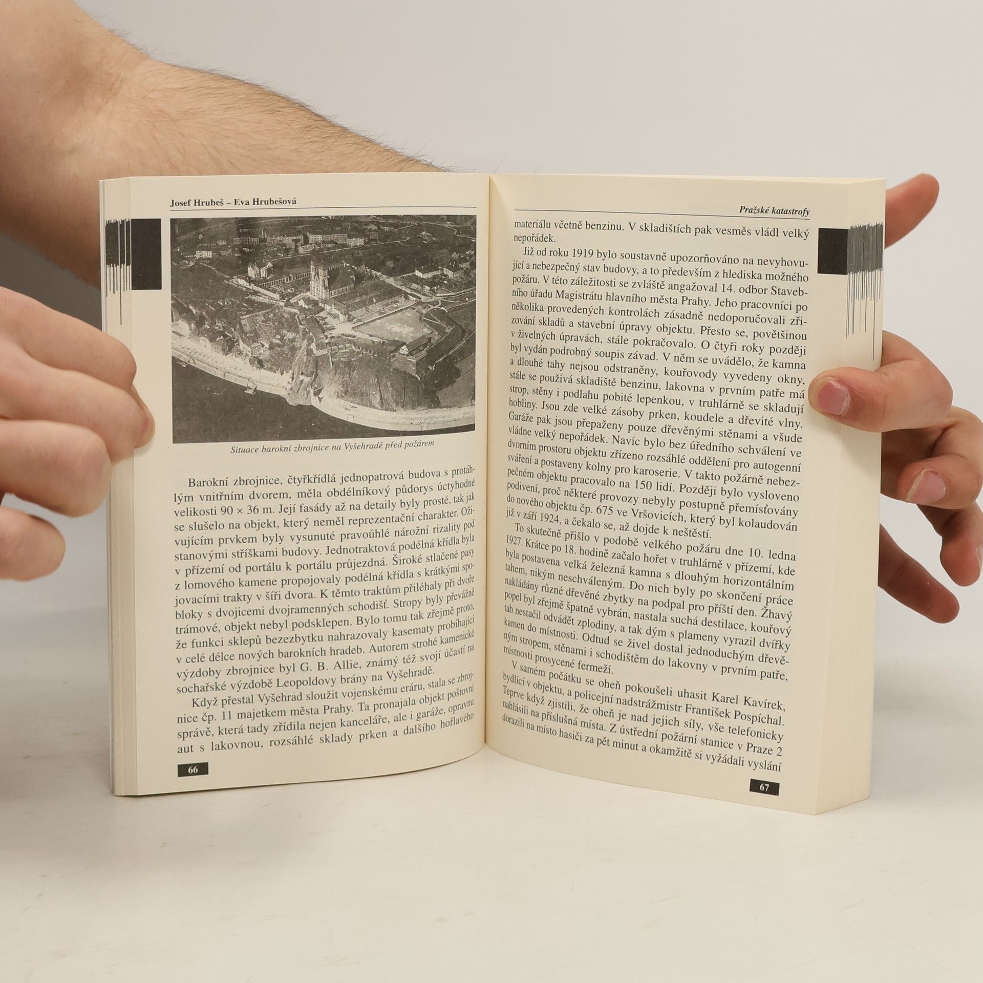 Ve své další knize nazvané Pražské katastrofy se známí pragensisté Eva a Josef Hrubešovi zabývají smutnými událostmi, které stověžaté město nad Vltavou postihlo v průběhu několika staletí. V mnoha kapitolách připomínají kupříkladu požár Národního divadla, zničující povodně v letech 1890 a 2002, havárie leteckých balónů na Zemské jubilejní výstavě v roce 1891, výbuch parního kotle a následné potopení parníku Františka Josefa I. v roce 1898, zničující požár velké barokní zbrojnice na Vyšehradě, zřícení domu Na Poříčí, známější tramvajové nehody, nálety spojeneckých letadel na Prahu na sklonku II. světové války, požár plynojemu v Michelské plynárně, havárii lanové dráhy a sesuv zeminy na Petříně a další. Některé katastrofy byly způsobeny přírodními živly, válečnými událostmi, selháním lidského faktoru a bohužel i úmyslně. Jednotlivá témata autoři zpracovali podle historických odkladů, které shromažďovali několik let.