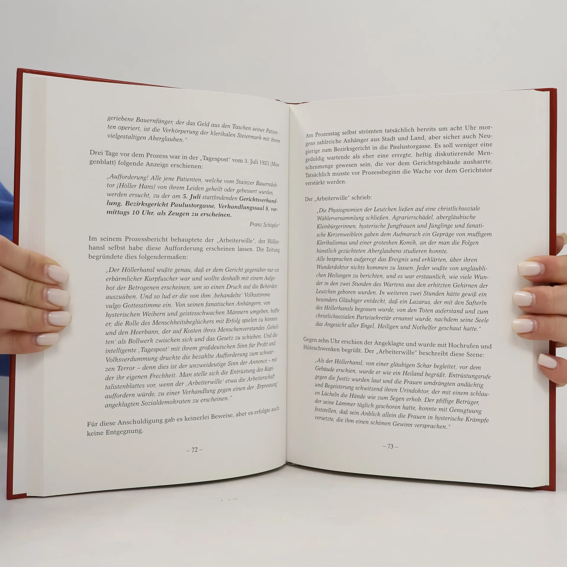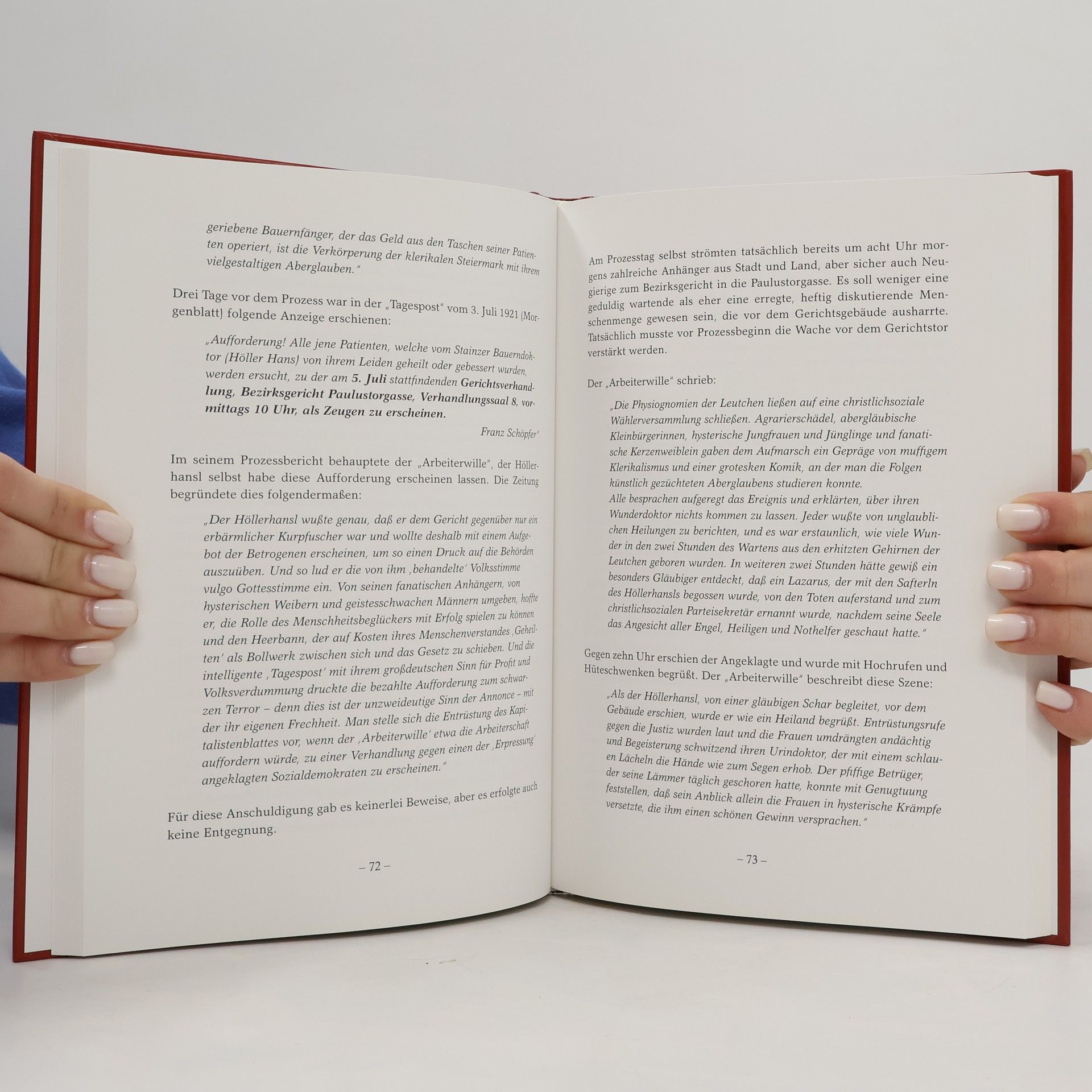Zwischen 1920 und 1930 strömten zahlreiche Heilsuchende ins weststeirische Stainz und weiter nach Rachling, einem abgelegenen Bergweiler. Täglich kamen Hunderte mit der Stainzerbahn, die bald als „Flascherlzug“ bekannt wurde, um den Naturheiler Johann Reinbacher, auch „Höllerhansl“ genannt, aufzusuchen. Menschen unterschiedlichster Herkunft, von einfachen Bauersfrauen bis zu ägyptischen Prinzessinnen, suchten bei ihm Rat und Hilfe. Sie brachten Urinproben mit, und nach einem kurzen Blick auf das „Flascherl“ verschrieb der „Höllerhansl“ seine flüssigen Medikamente oder Teemischungen. Die Meinungen über ihn waren gespalten: Während einige ihn als Kurpfuscher und Betrüger ansahen, betrachteten andere ihn als Heiler und Helfer. Sein Leben war geprägt von einem inneren Konflikt zwischen dem Wunsch, ein religiöses Leben zu führen, und dem Drang, kranken Menschen zu helfen. Aufgrund seiner einfachen Herkunft hatte er jedoch keine Möglichkeit, eine legale medizinische Ausbildung zu erhalten. Diese Erzählung dokumentiert die außergewöhnliche Geschichte dieses heilkundigen, gläubigen und geschäftstüchtigen Mannes, gestützt auf Zeitungsberichte, Gerichtsakten, historische Fotos, Zeitzeugenberichte und Anekdoten.