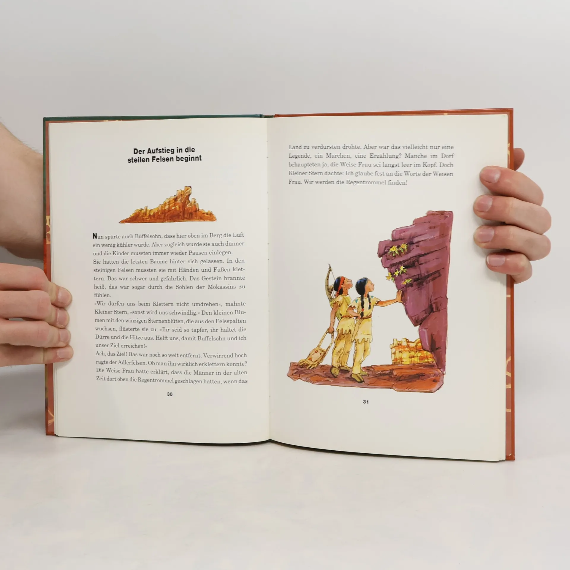 Im Apachenland herrscht grosse Dürre. Kleiner Stern und Büffelsohn machen sich nach dem Rat der weisen Frau auf den beschwerlichen Weg zum Gipfel des Adlerfelsens, um die alte Regentrommel zu suchen.