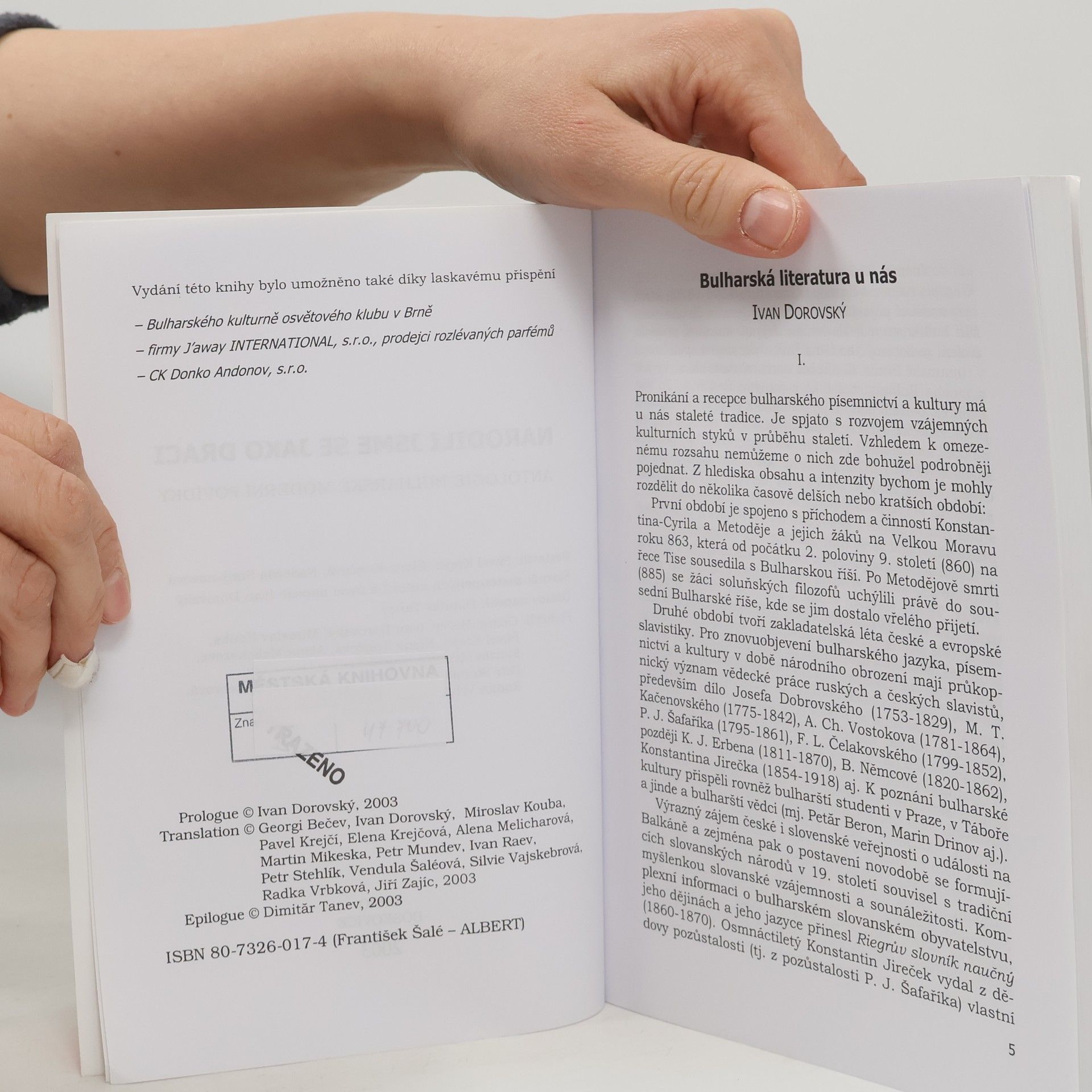 Antologie představuje průřez bulharskou povídkovou tvorbou 20. století s důrazem na poslední čtvrtstoletí. V českém překladu jsou tak nejen povídky klasiků bulharské literatury (např. E. Stanev, N. Chajtov, J. Vălčev, J. Radičkov) nebo autorů střední generace (např. B. Biolčev, I. Kulekov, L. Galina), ale též autorů současné mladé generace (např. P. Čuchov, K. Dimitrovová, N. Liškovská, Lj. Dilov ml.). Publikace obsahuje slovníkové zpracování údajů o příslušných autorech (I. Dorovský), úvahu o současné bulharské povídce (D. Tanev) a přehled recepce bulharské literatury v Česku (I. Dorovský). Výbor sestavili: Pavel Krejčí, Elena Krejčová (Ústav slavistiky Filozofické fakulty Masarykovy univerzity v Brně) a Nadežda Staljanovová