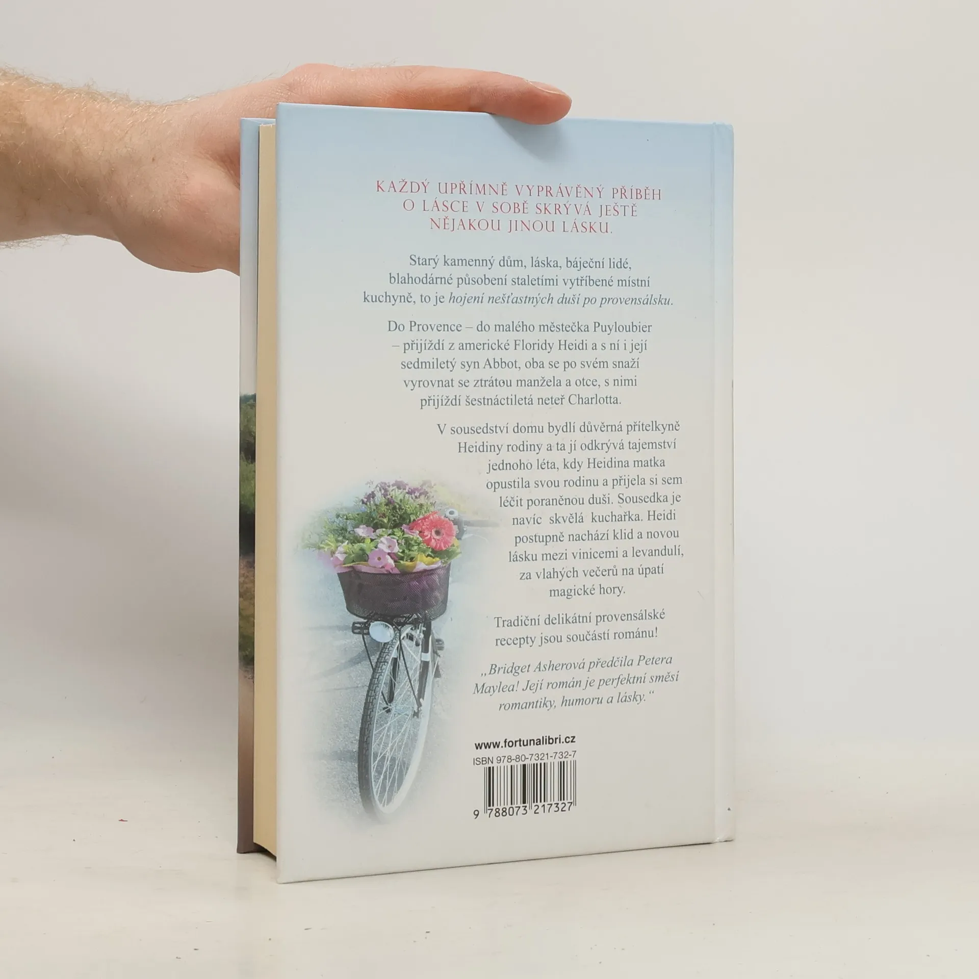 Starý kamenný dům, láska, báječní lidé, blahodárné působení staletími vytříbené místní kuchyně, to je hojení nešťastných duší po provensálsku. Do Provence – do malého městečka Puyloubier – přijíždí z americké Floridy Heidi a s ní i její sedmiletý syn Abbot, oba se po svém snaží vyrovnat se ztrátou manžela a otce, s nimi přijíždí šestnáctiletá neteř Charlotta. V sousedství domu bydlí důvěrná přítelkyně Heidiny rodiny a ta jí odkrývá tajemství jednoho léta, kdy Heidina matka opustila svou rodinu a přijela si sem léčit svou poraněnou duši. Sousedka je navíc skvělá kuchařka. Heidi postupně nachází klid a novou lásku mezi vinicemi, levandulí, za vlahých večerů na úpatí magické hory. Tradiční delikátní provensálské recepty jsou součástí románu!