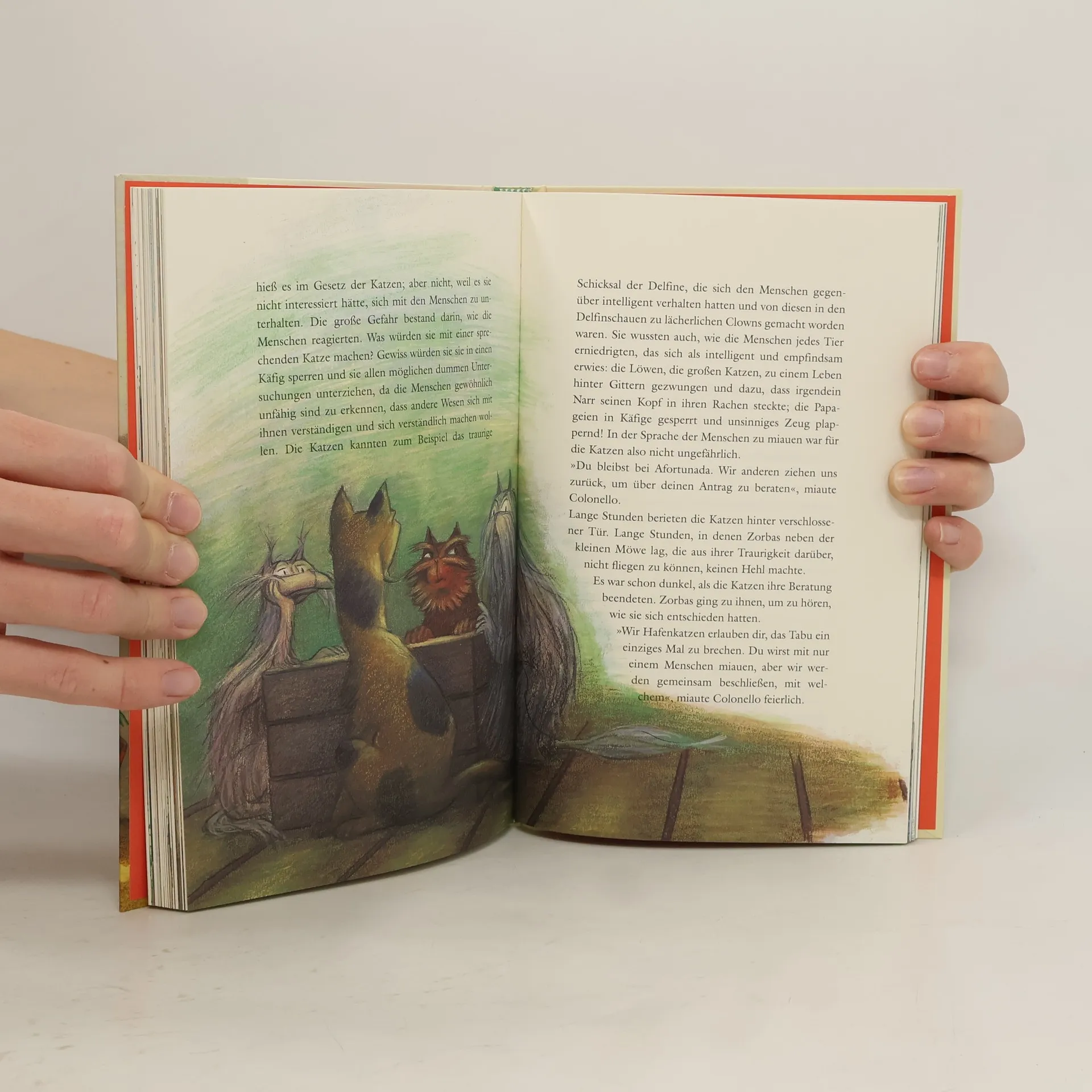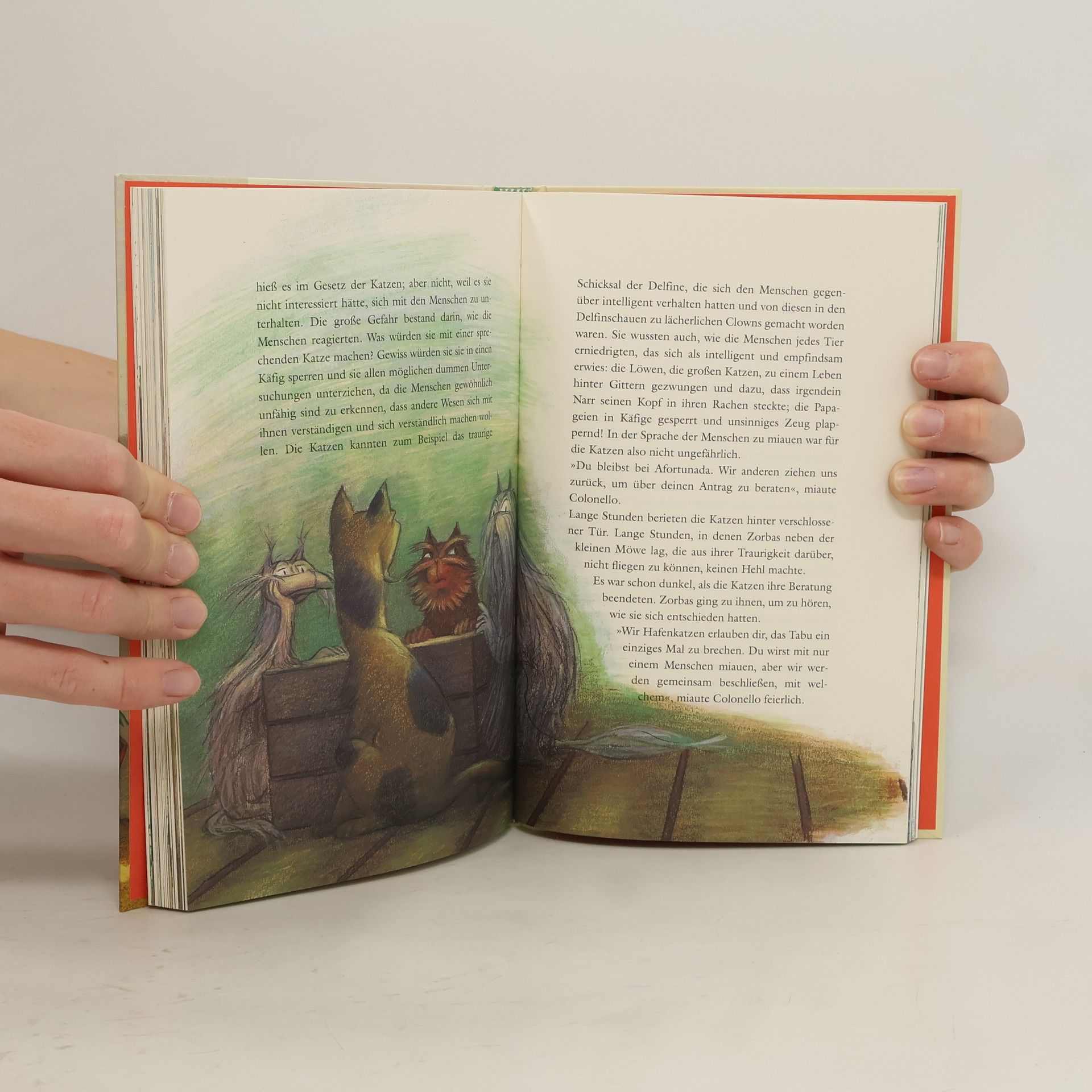 Die beste Mami der Welt hat vier Samtpfoten Der gutmütige Kater Zorbas gibt einer sterbenden Möwe das Versprechen, ihr Ei auszubrüten, das Möwenküken großzuziehen und ihm das Fliegen beizubringen. Allein würde Kater Zorbas das nie schaffen. Aber seine Freunde, die Hamburger Hafenkatzen, stehen ihm mit Rat und Tat zur Seite. Die kleine Möwe schlüpft und wächst und gedeiht. Nur das Fliegenlernen will nicht so richtig klappen … Der internationale Bestseller von Luis Sepúlveda über einen Kater, der ein Möwenküken großzieht, begeistert nicht nur kleine Leserinnen und Leser. Er wurde auch unter der Regie von Enzo D’Alò erfolgreich verfilmt und vielfach auf der Bühne aufgeführt. Mit großartigen farbigen Illustrationen von Sabine Wilharm.