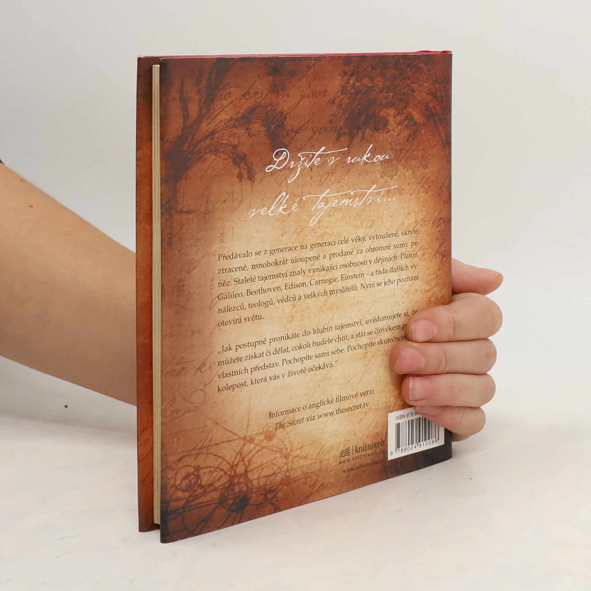 Stojíte na prahu poznání. Fragmenty velkého tajemství se objevují v legendách, mýtech a filozofiích po celá staletí, jen znát tu správnou šifru. Kniha, kterou právě držíte v rukou, shromáždila moudrost předchozích generací a naučí vás dosáhnout všeho, co si přejete - v oblasti peněz, zdraví, vztahů i osobního štěstí. Pochopíte skryté síly, které ve vás dřímají, a odhalíte jejich moc. Učení novodobých mistrů, kteří štěstí, zdraví a bohatství dosáhli, vám ukáže, jak lze tajemství spokojeného života aplikovat na každém kroku.