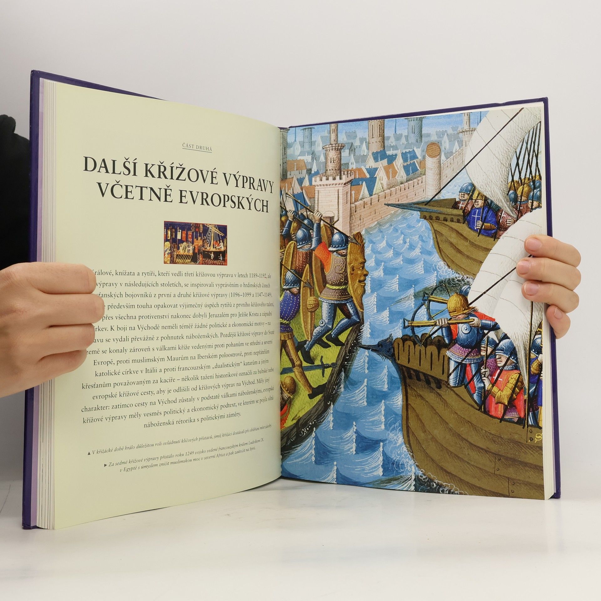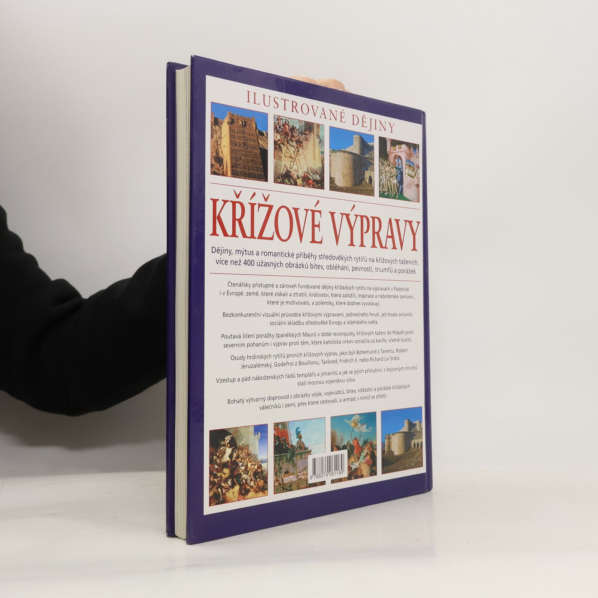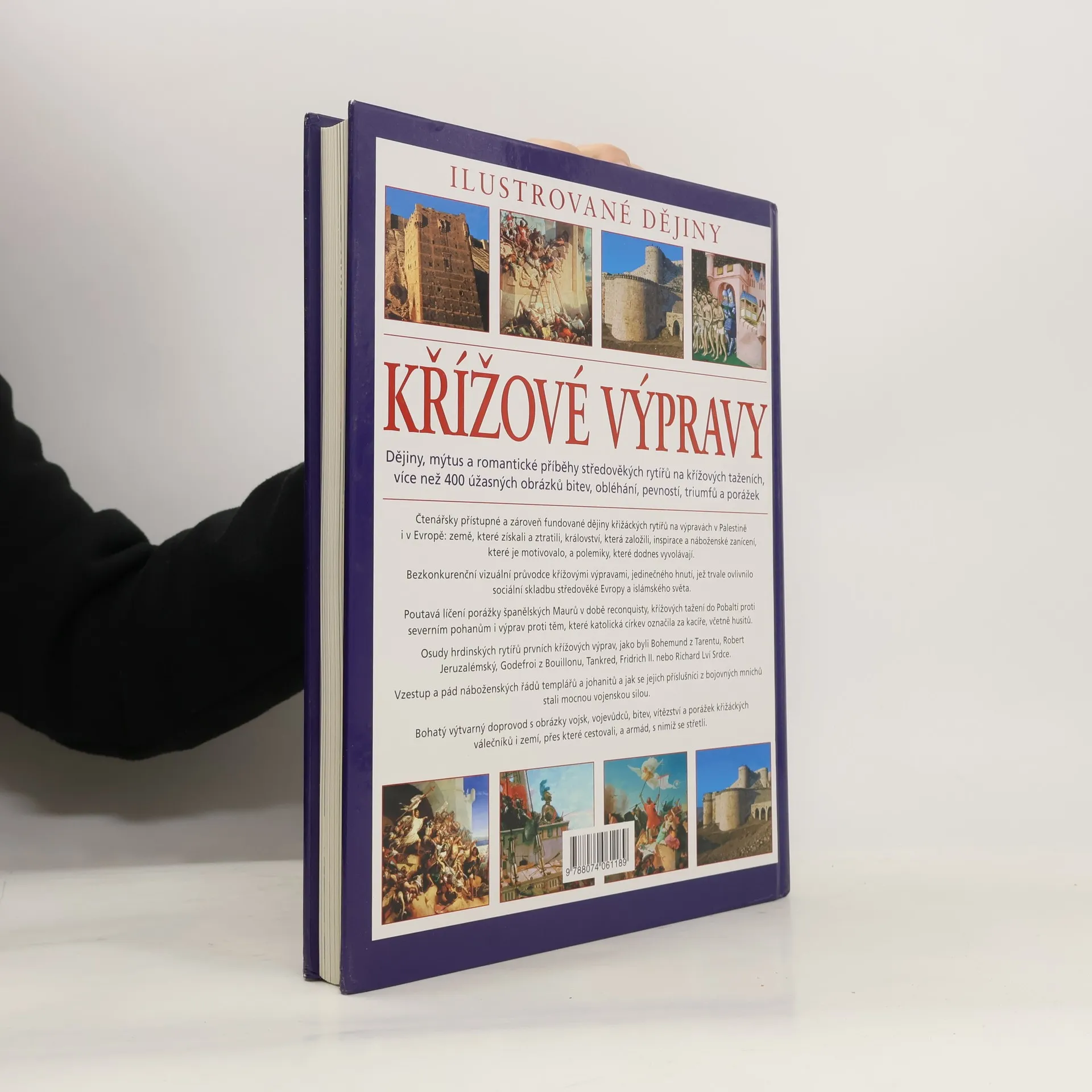 Tento bezkonkurenční vizuální průvodce křížovými výpravami, jedinečného hnutí, jež trvale ovlivnilo sociální skladbu středověké Evropy a islámského světa, vám přiblíží porážky španělských Maurů v době reconquisty, křížová tažení do Pobaltí proti severním pohanům i výpravy proti těm, které katolická církev označila za kacíře, včetně husitů. Seznámíte se s osudy hrdinských rytířů prvních křížových výprav, jako byli Bohemund z Tarentu, Robert Jeruzalémský, Godefroi z Bouillonu, Tankred, Fridrich II. nebo Richard Lví Srdce. Poutavý text doplňuje bohatý výtvarný doprovod s obrázky vojsk, vojevůdců, bitev, vítězství a porážek křižáckých válečníků i zemí, přes které cestovali, a armád, s nimiž se střetli.
