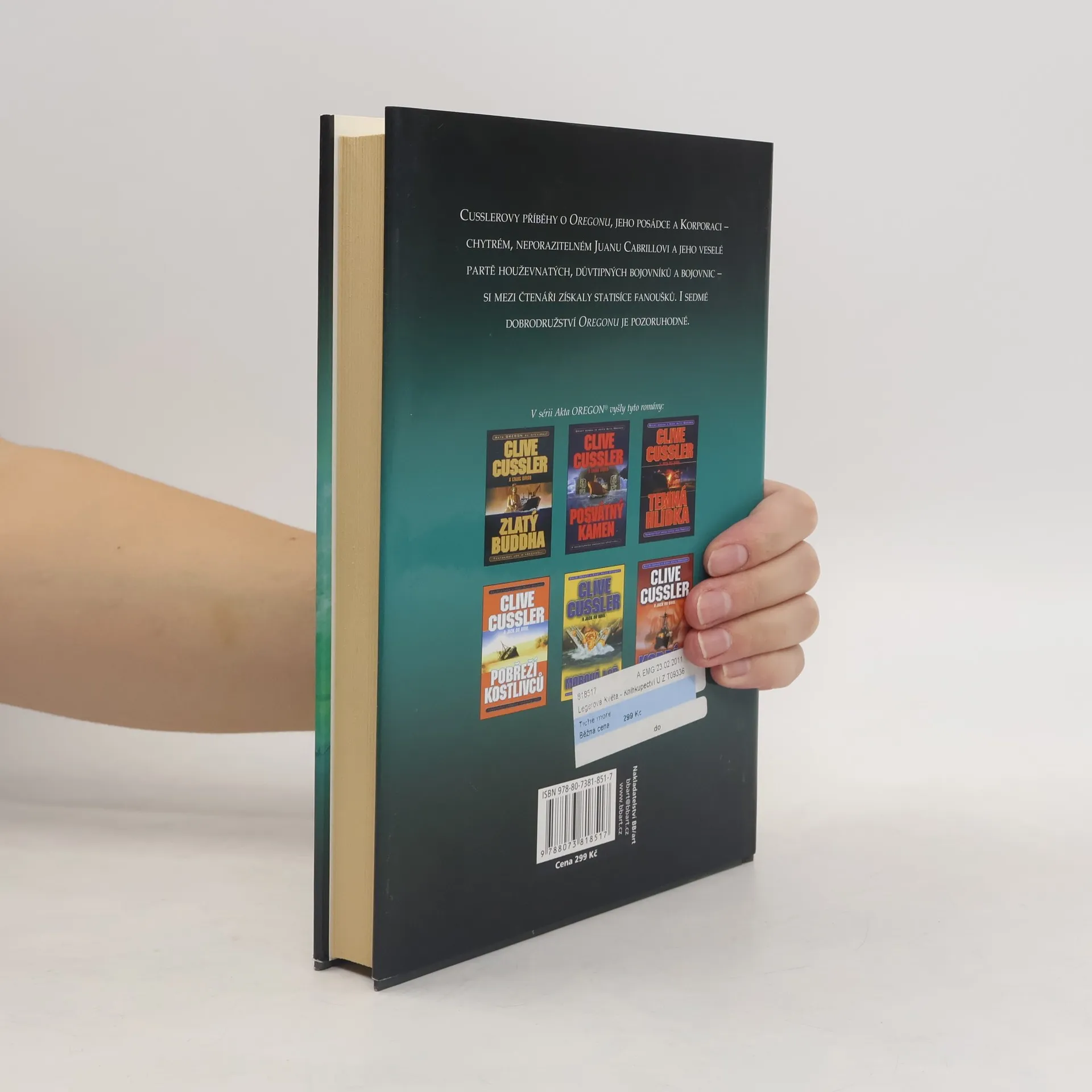 Cusslerovy příběhy o Oregonu a jeho posádce – „chytrém, neporazitelném Juanu Cabrillovi a jeho veselé partě houževnatých, důvtipných bojovníků a bojovnic“ (Publisher Weekly) – si mezi čtenáři získaly statisíce fanoušků. Ale sedmé dobrodružství Oregonu je i tak pozoruhodné. Dne 7. prosince 1941 prozkoumávalo pět bratrů šachtu na ostrůvku nedaleko pobřeží státu Washington a učinilo vzrušující objev, jenže jejich výzkum přerušily zprávy o útoku na Pearl Harbor. V současnosti učiní Cabrillo, pátrající v argentinské džungli po pozůstatcích zříceného satelitu, vlastní šokující objev. Snaha objasnit záhadu ho nejprve dovede k onomu ostrůvku a jeho tajemství a pak mnohem hlouběji do minulosti, k pradávné čínské expedici a prokletí, které, jak se zdá, přetrvalo po pět set let. Pokud Cabrillův tým uspěje ve svém pátrání, čeká ho nevyčíslitelné bohatství. Pokud ne… bude jim jedinou odměnou smrt.