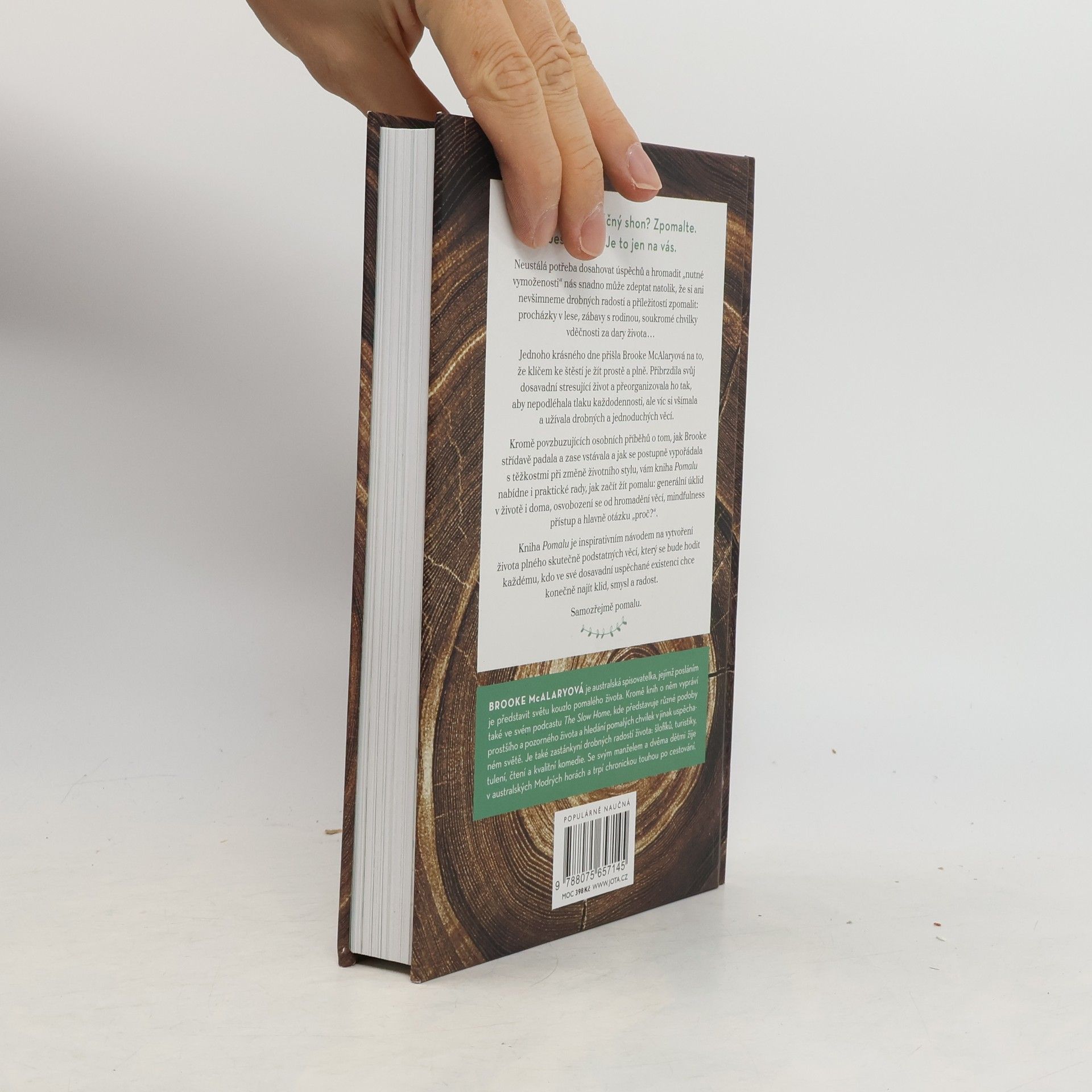Neustálá potřeba dosahovat úspěchů a hromadit „nutné vymoženosti“ nás snadno může zdeptat natolik, že si ani nevšimneme drobných radostí a příležitostí zpomalit: procházky v lese, zábavy s rodinou, soukromé chvilky vděčnosti za dary života... Jednoho krásného dne přišla Brooke McAlaryová na to, že klíčem ke štěstí je žít prostě a plně. Přibrzdila svůj dosavadní stresující život a přeorganizovala ho tak, aby nepodléhala tlaku každodennosti, ale víc si všímala a užívala drobných a jednoduchých věcí. Kromě povzbuzujících osobních příběhů o tom, jak Brooke střídavě padala a zase vstávala a jak se postupně vypořádala s těžkostmi při změně životního stylu, vám kniha Pomalu nabídne i praktické rady, jak začít žít pomalu: generální úklid v životě i doma, osvobození se od hromadění věcí, mindfulness přístup a hlavně otázku „proč?“. Kniha Pomalu je inspirativním návodem na vytvoření života plného skutečně podstatných věcí, který se bude hodit každému, kdo ve své dosavadní uspěchané existenci chce konečně najít klid, smysl a radost. Samozřejmě pomalu.