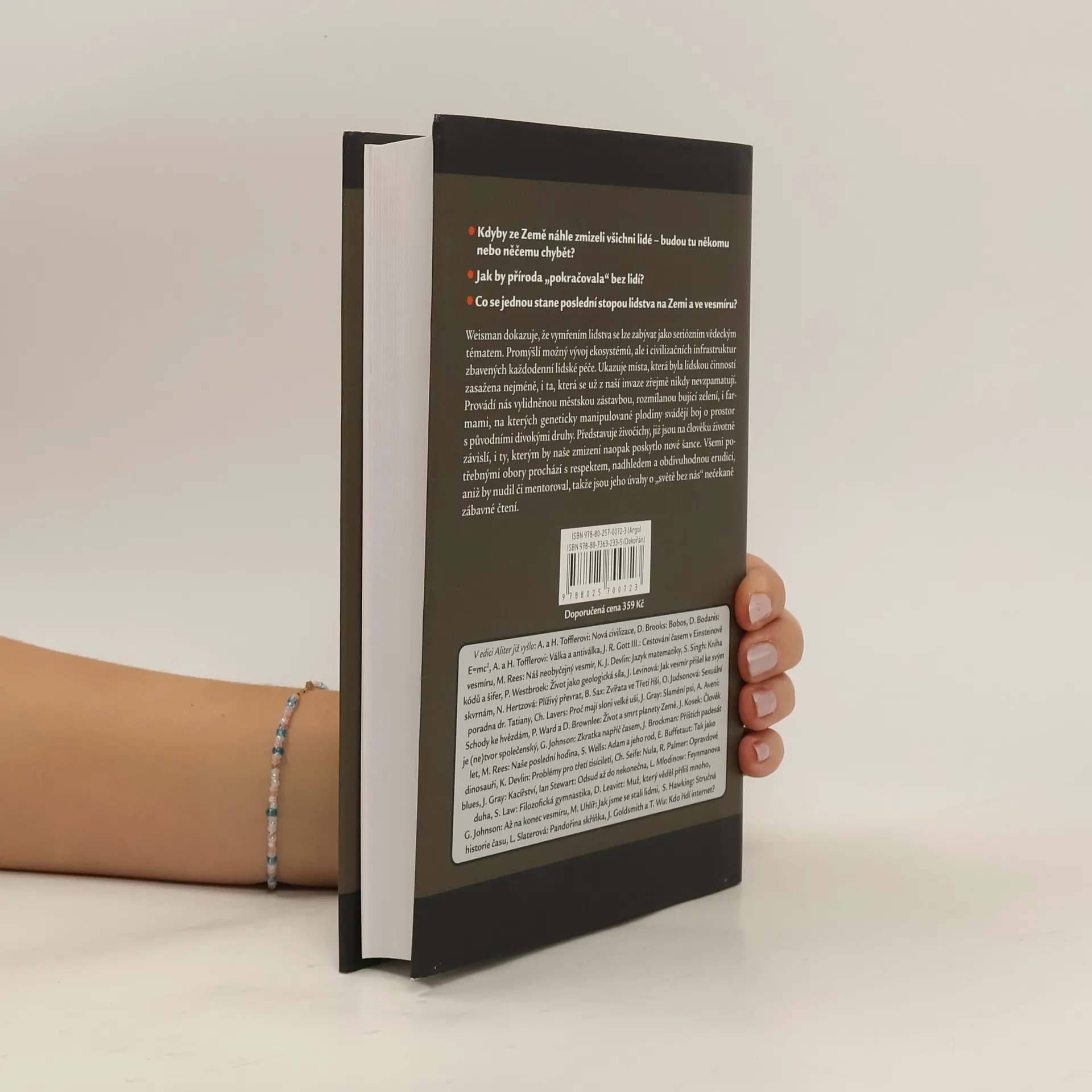 Myšlenkový experiment, který se stal bestsellerem New York Times a za nejlepší populárně-vědeckou publikaci roku 2007 byl vyhlášen hned dvěma magazíny – Time Magazine a Entertainment Weekly. Zajímalo by vás, co by se stalo, kdyby ze dne na den z naší zeměkoule zmizeli lidé? Jak dlouho by zůstaly po lidech na naší zemi stopy? Jak rychle by se zhroutila námi vybudovaná infrastruktura? Jak dlouho by bez naší péče vydržely stavby, metro a města? Památky a umění? Co z toho nejdéle, a co by naopak spadlo jako první? Kteří živočichové by z našeho zmizení profitovali, a kteří by naopak zanikli s námi? Předpokládá se např., že by spolu s námi zcela přirozeně vyhynuli švábové, ale ptáci by na tom byli mnohem lépe a vyvinuli by se v mnohé nové druhy. Jak by dopadly farmy, pole, národní parky a zahrady? Nejdelší životnost na zemi bez nás by měly bronzové sochy, umělá hmota a radiové vlny. Zároveň je z některých oblastí na zemi, které člověk poničil, a posléze opustil (např. Černobyl), patrné, že příroda má sebeuzdravující moc.