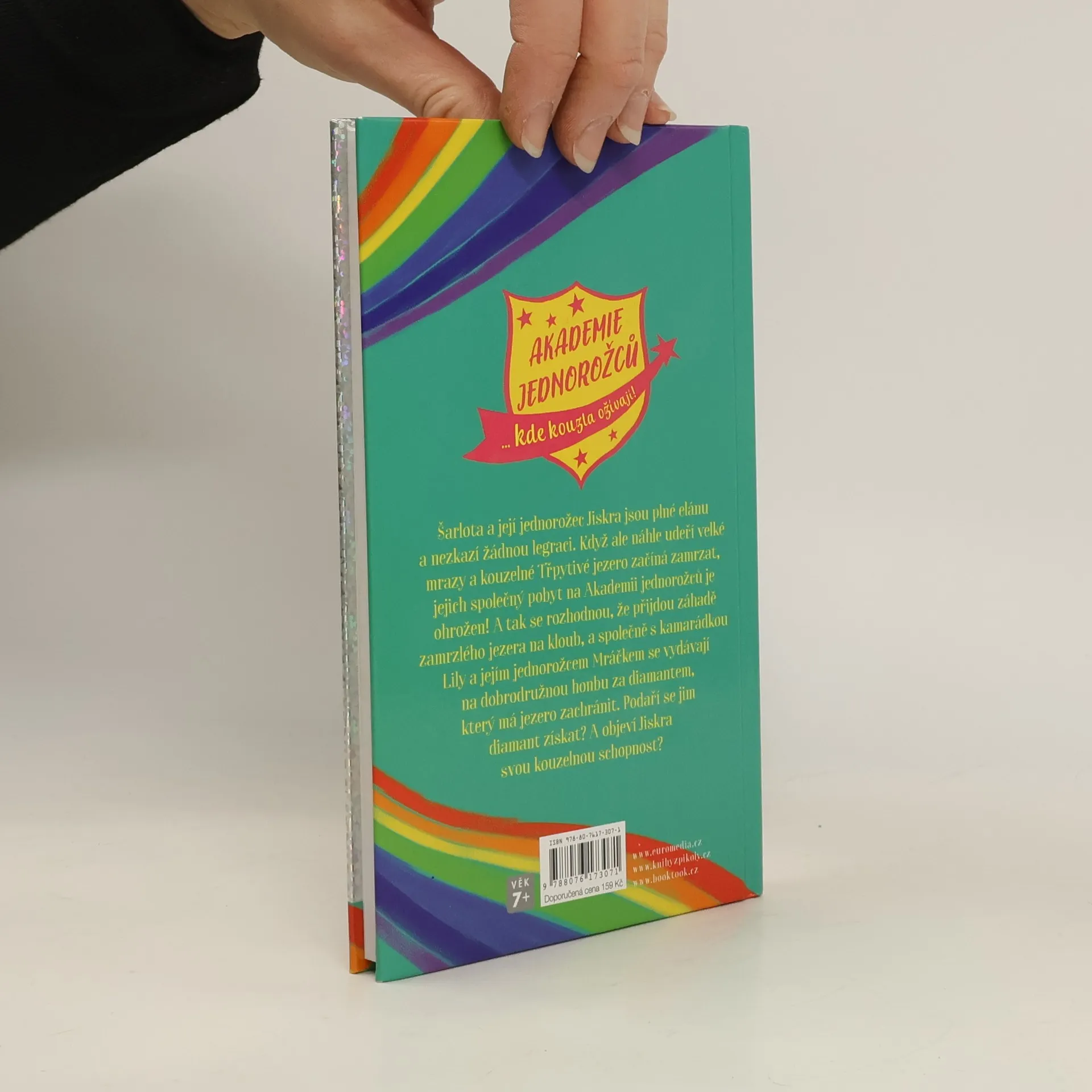 Šarlota a její jednorožec Jiskra jsou plní elánu a nezkazí žádnou legraci. Když ale náhle udeří velké mrazy a kouzelné Třpytivé jezero začíná zamrzat, jejich společný pobyt na Akademii jednorožců je ohrožen! A tak se rozhodnou, že přijdou záhadě zamrzlého jezera na kloub a společně s kamarádkou Lily a jejím jednorožcem Mráčkem se vydávají na dobrodružnou honbu za diamantem, který by jejich jezero měl zachránit. Podaří se jim ho získat? A objeví Jiskra svou kouzelnou schopnost?
